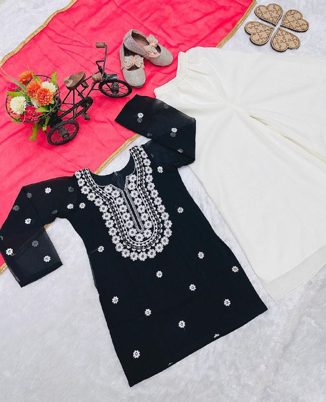 Heavy Fox Georgette With Embroidery Work Kurti For Kids