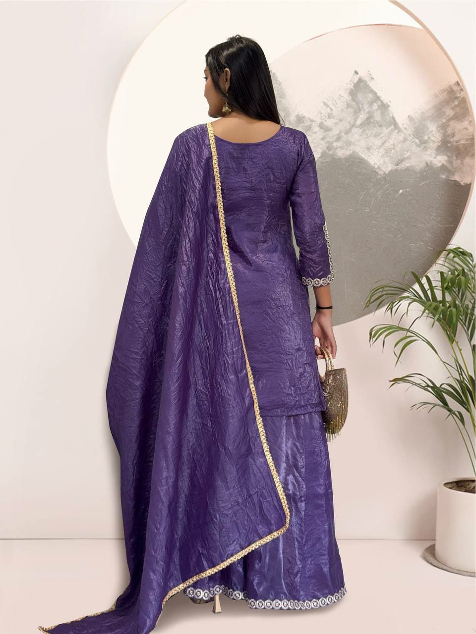 HEAVY GOLD CRUSH SILK WITH ATTRACTIVE & BEUTYFUL EMBROIDERY BEADS AND THREAD WORK PALAZZO KURTI