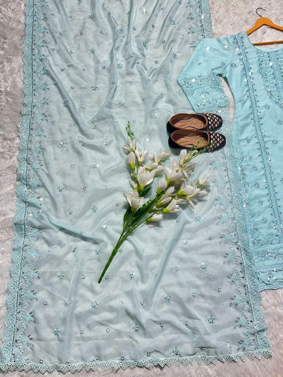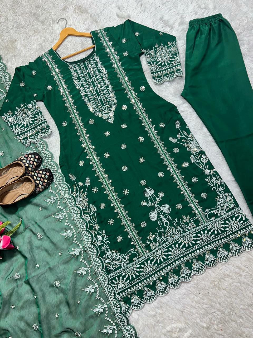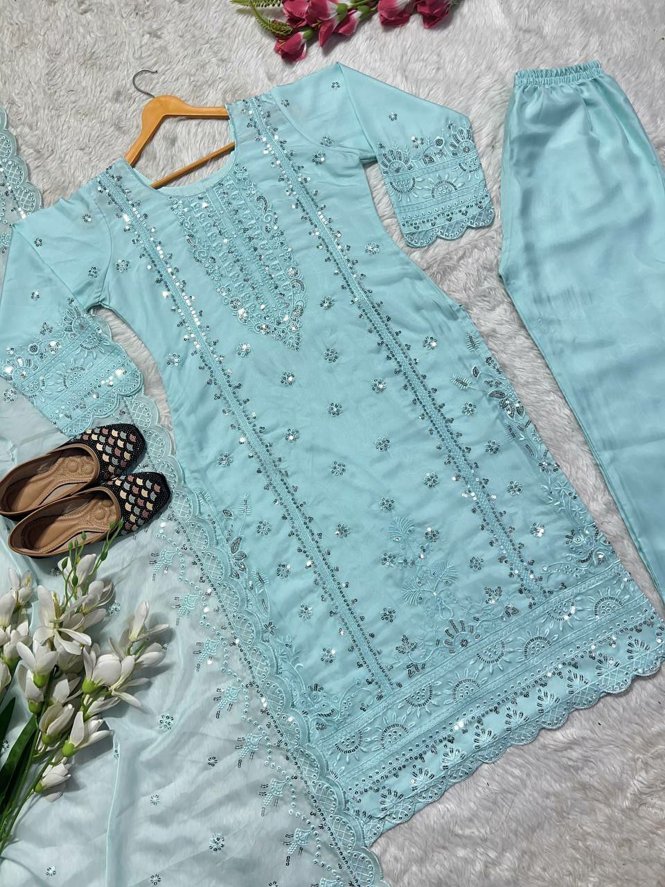 Heavy Pure Organza Material With 5mm Sequence Multi Embroidery WorkKurti with ( Fully Sleeves )