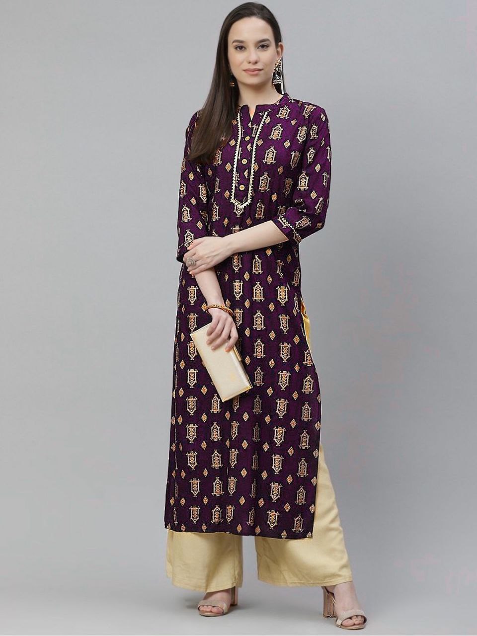 HEAVY RAYON FOIL WORK KURTI FOR WOMEN