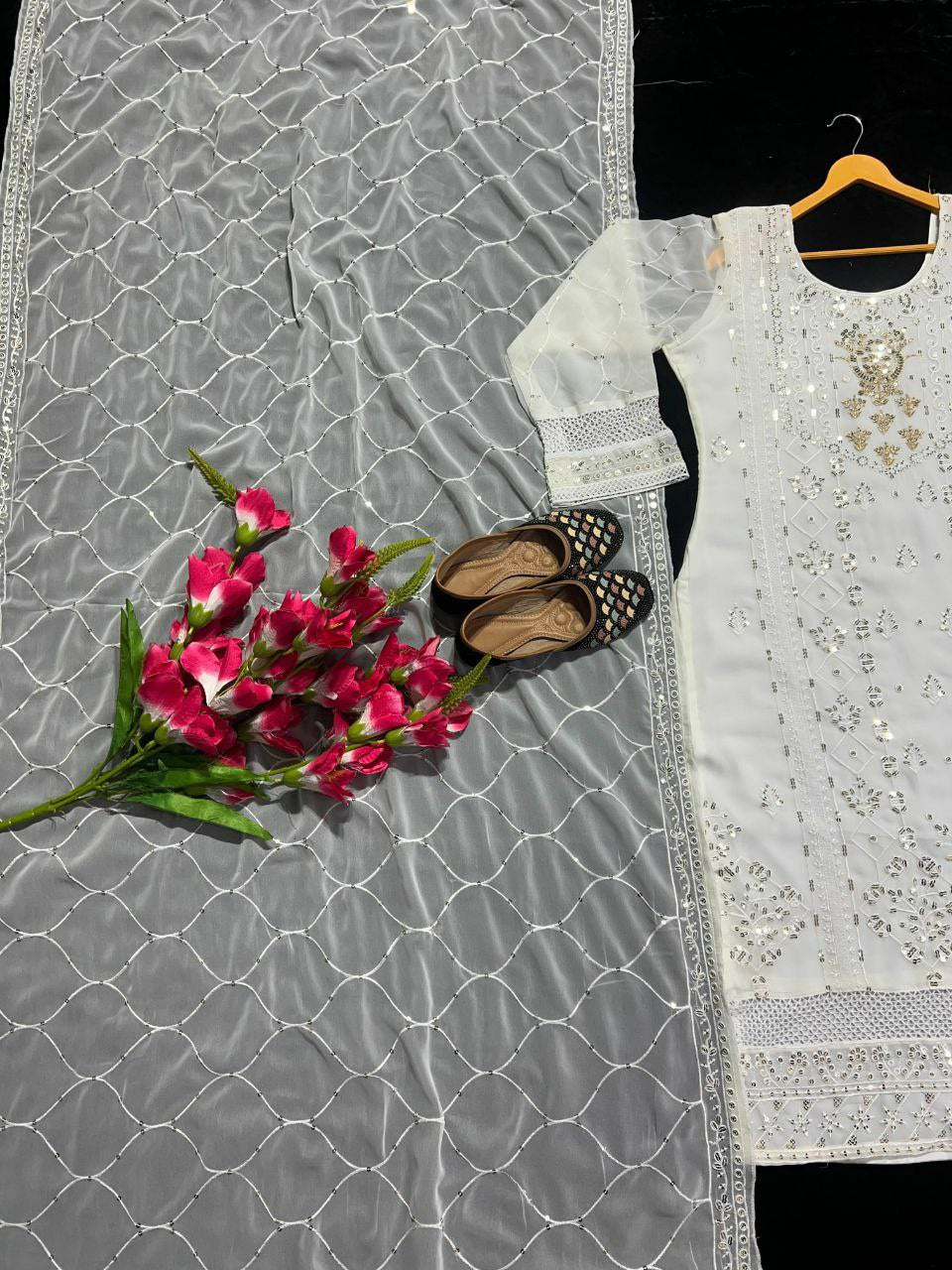 Hevay Faux Georgette With Heavy multi Needle Embroidery 5mm Sequence Work With fancy Less . (Fully Sleeve’s) Long Kurti For Women