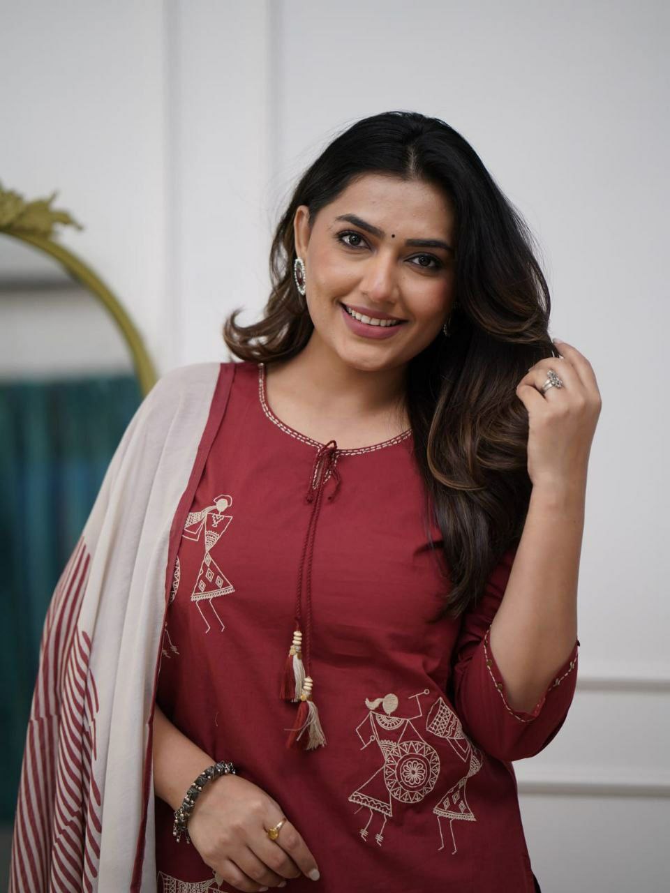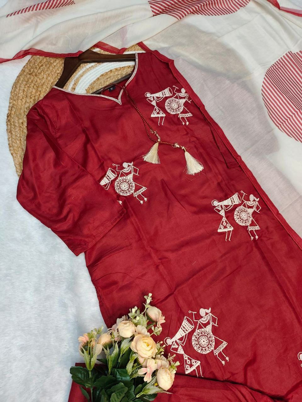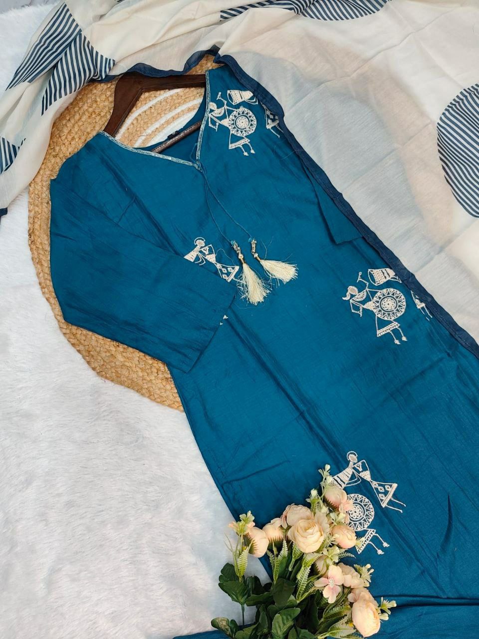 Nack with Embroidery Work And heavy Silk Print Dupatta