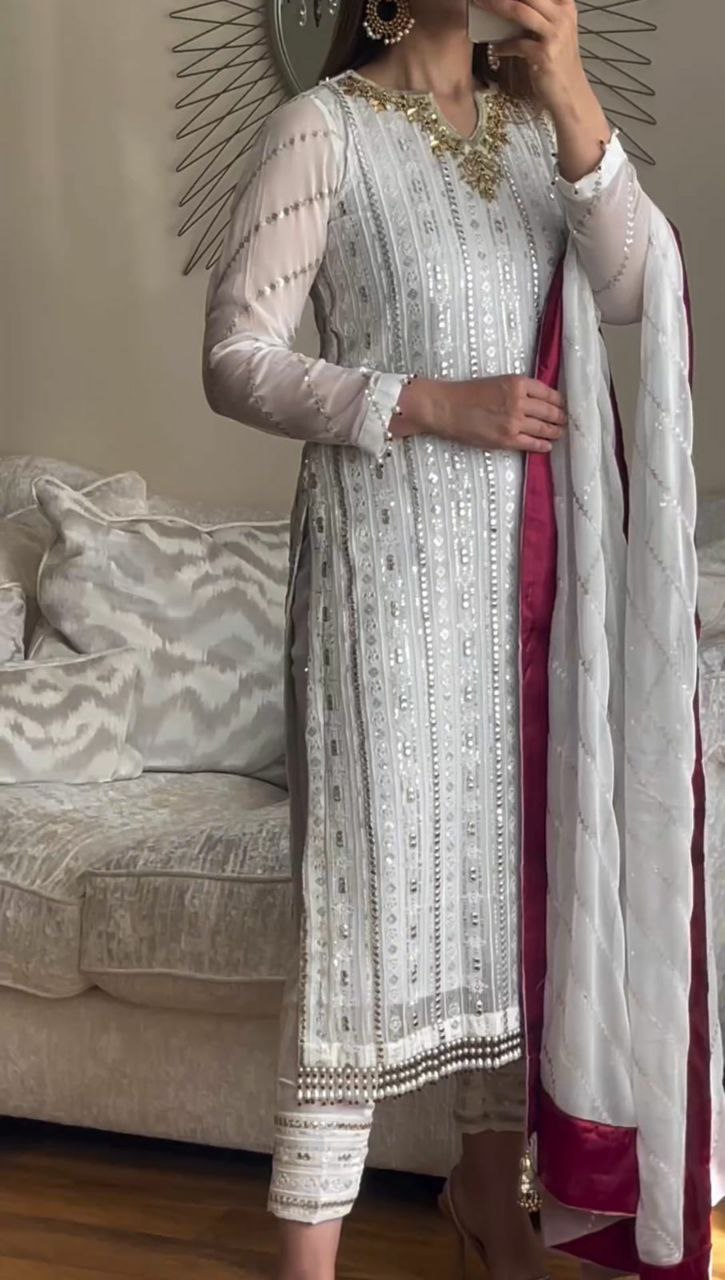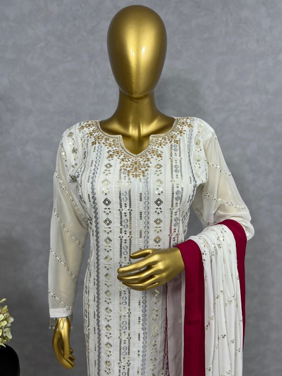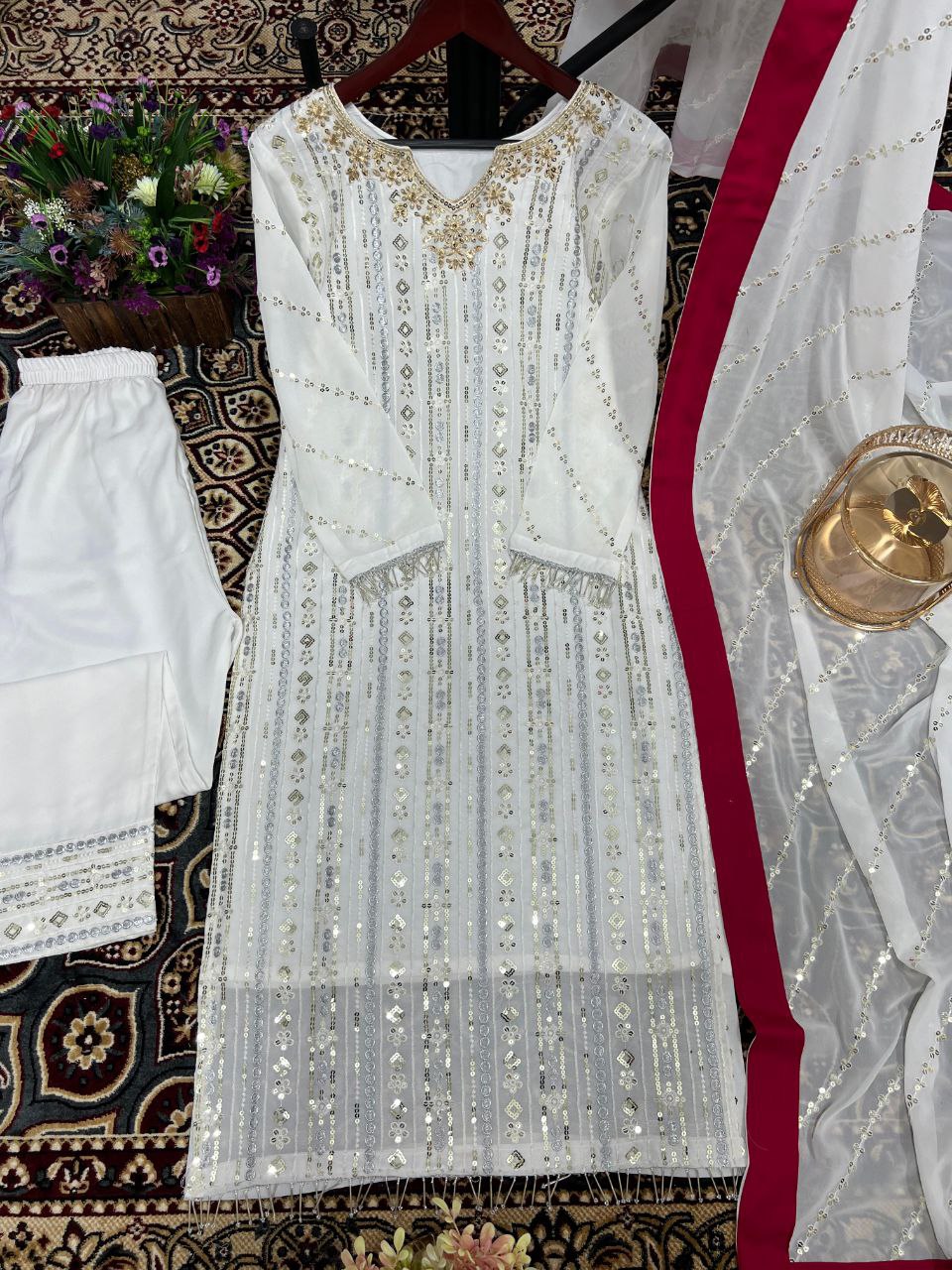 ONG KURTI,BOTTOM AND DUPATTA WITH BEAUTIFUL EMBROIDERY SEQUENCE WORK FABRICS DETAILS KURTI
