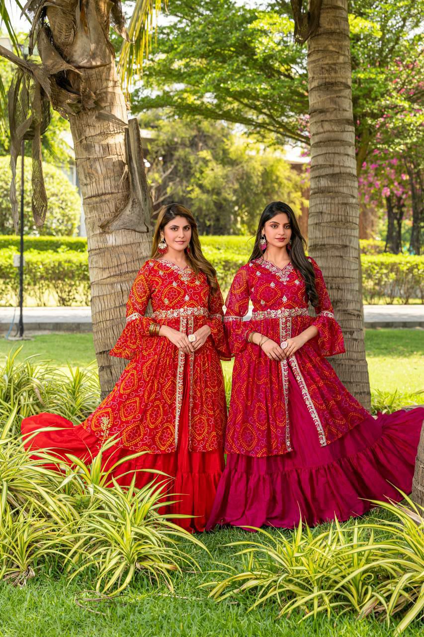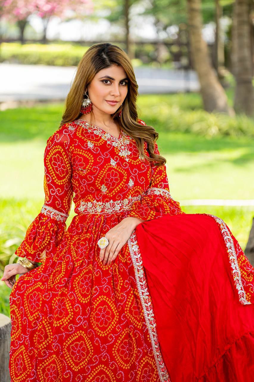 PURE BANDHEJ WITH HEAVY EMBROIDERY WORK CHOLI ATTACH SHRUGH