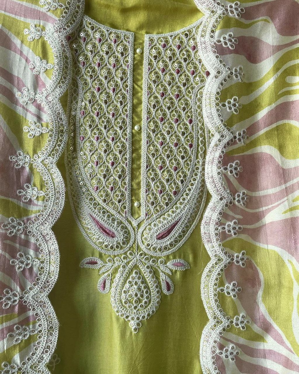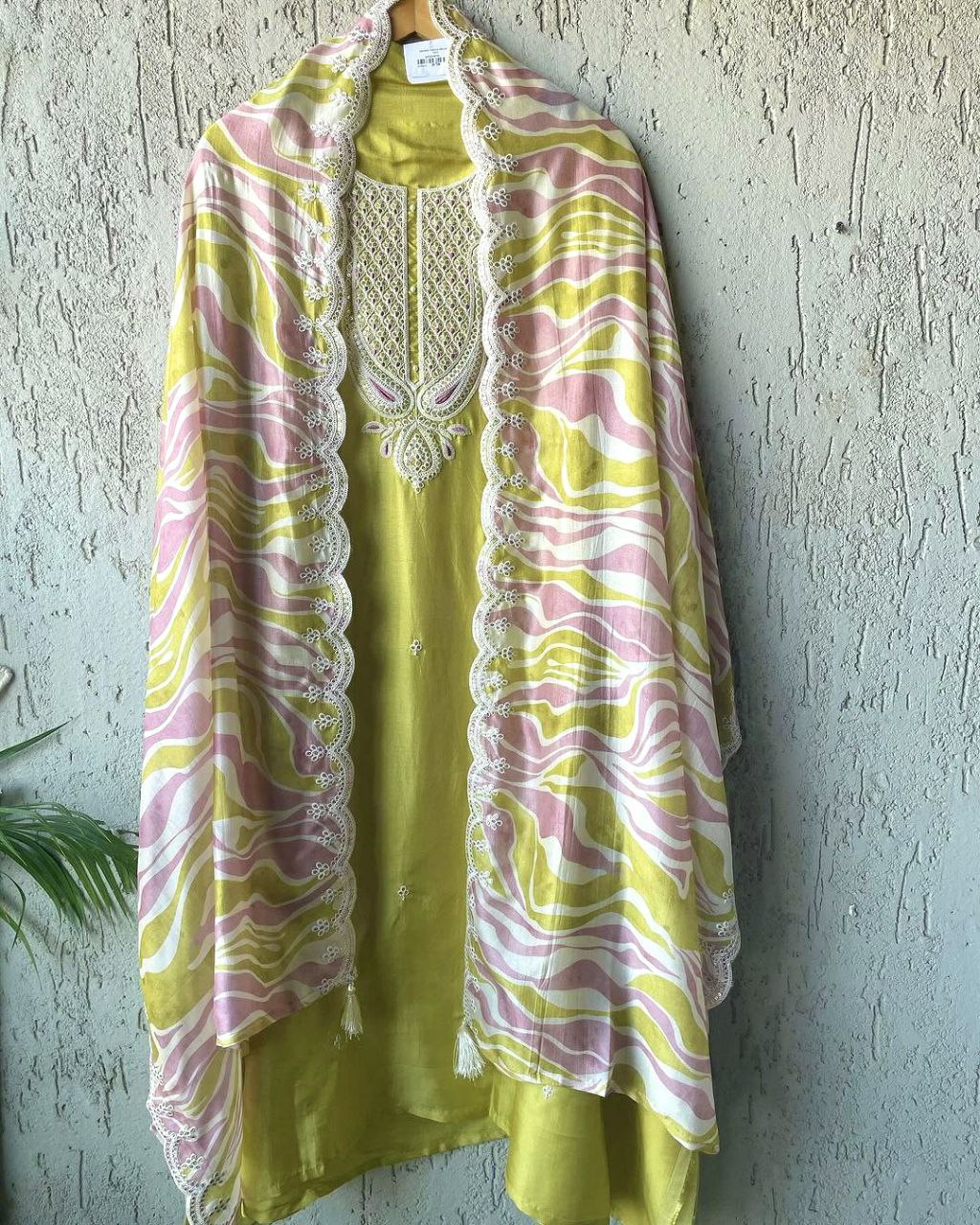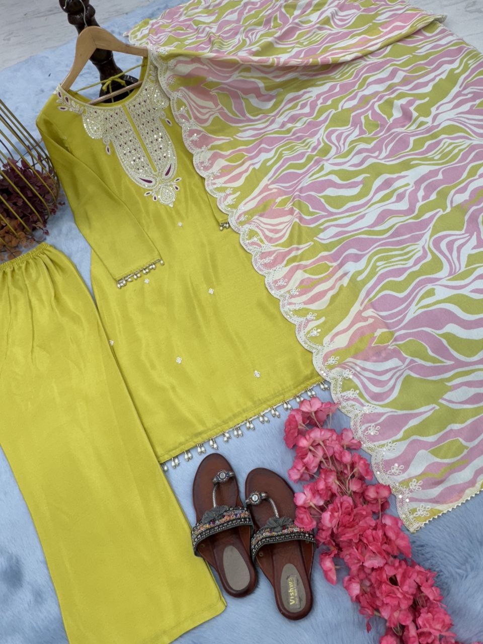 Pure Chinon Silk With Embroidery 5 mm Sequence & Coding Dori Work With Sleeves With Fancy Latkan Border