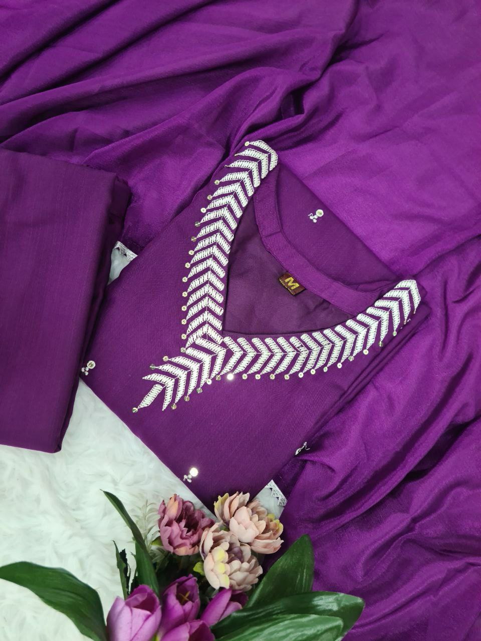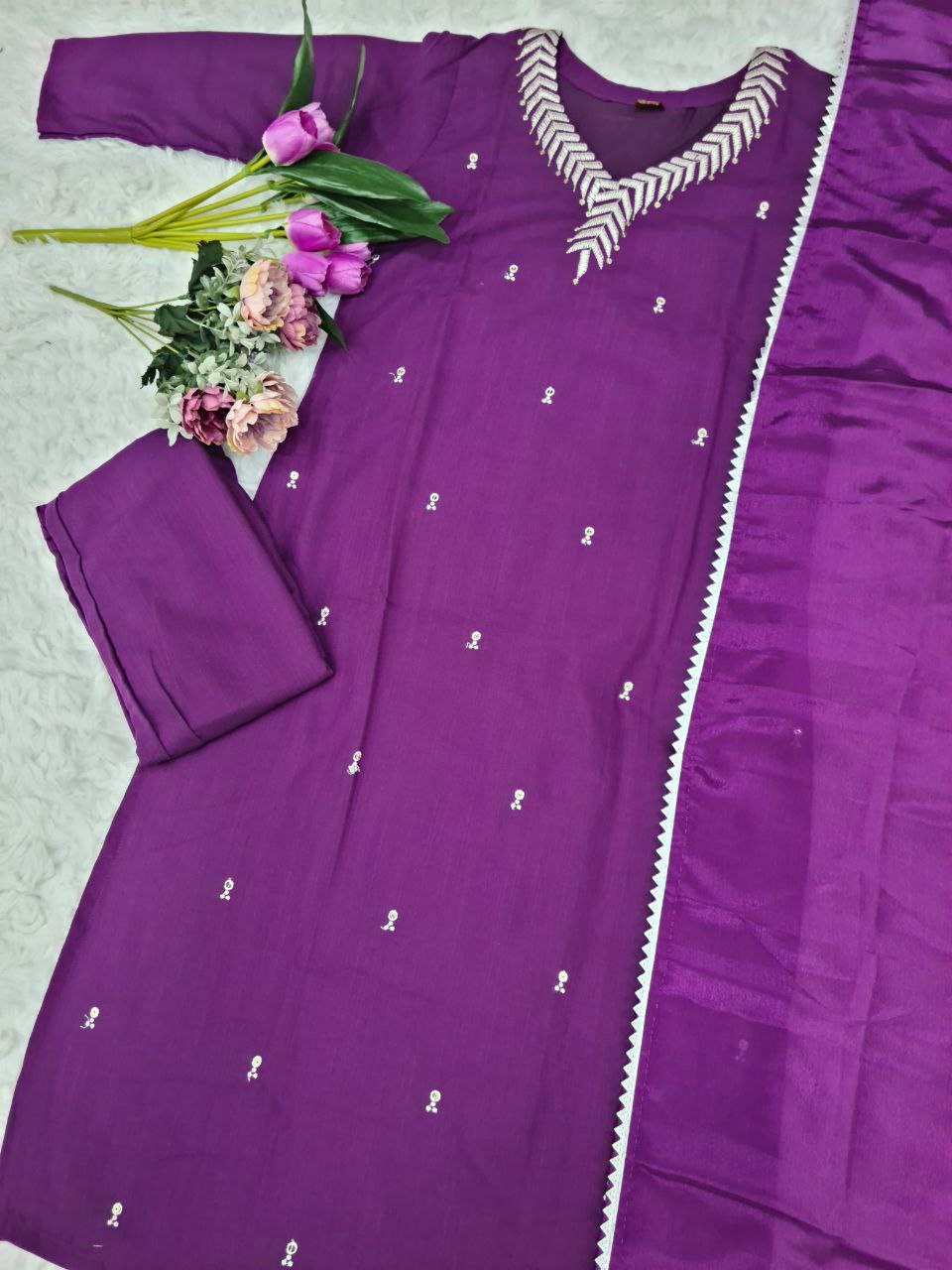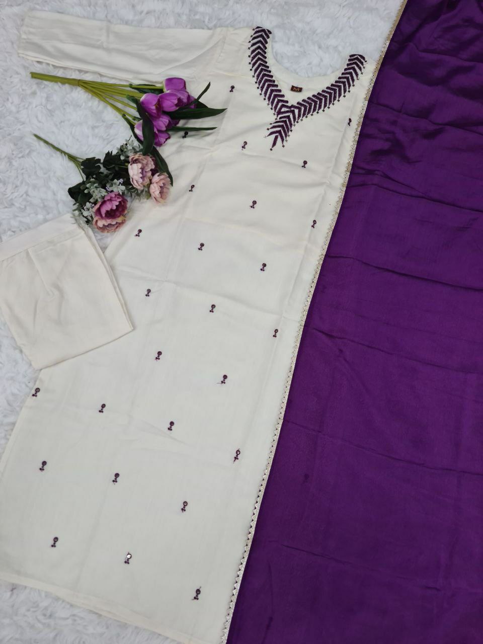 PURE REYON SLUB WITH SEQUENCE EMBROIDERY WORK KURTI SET
