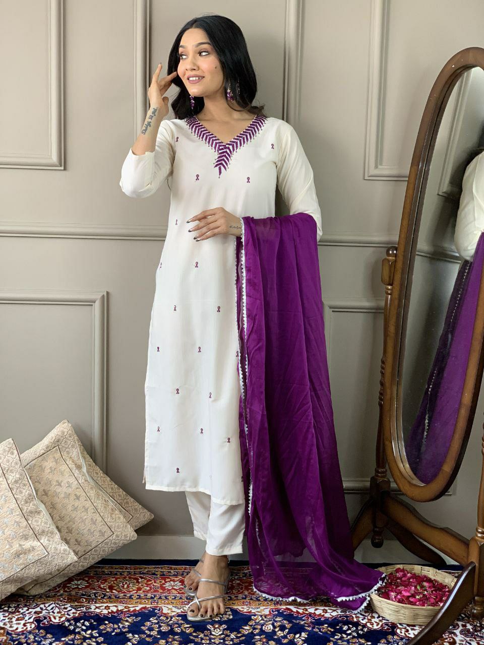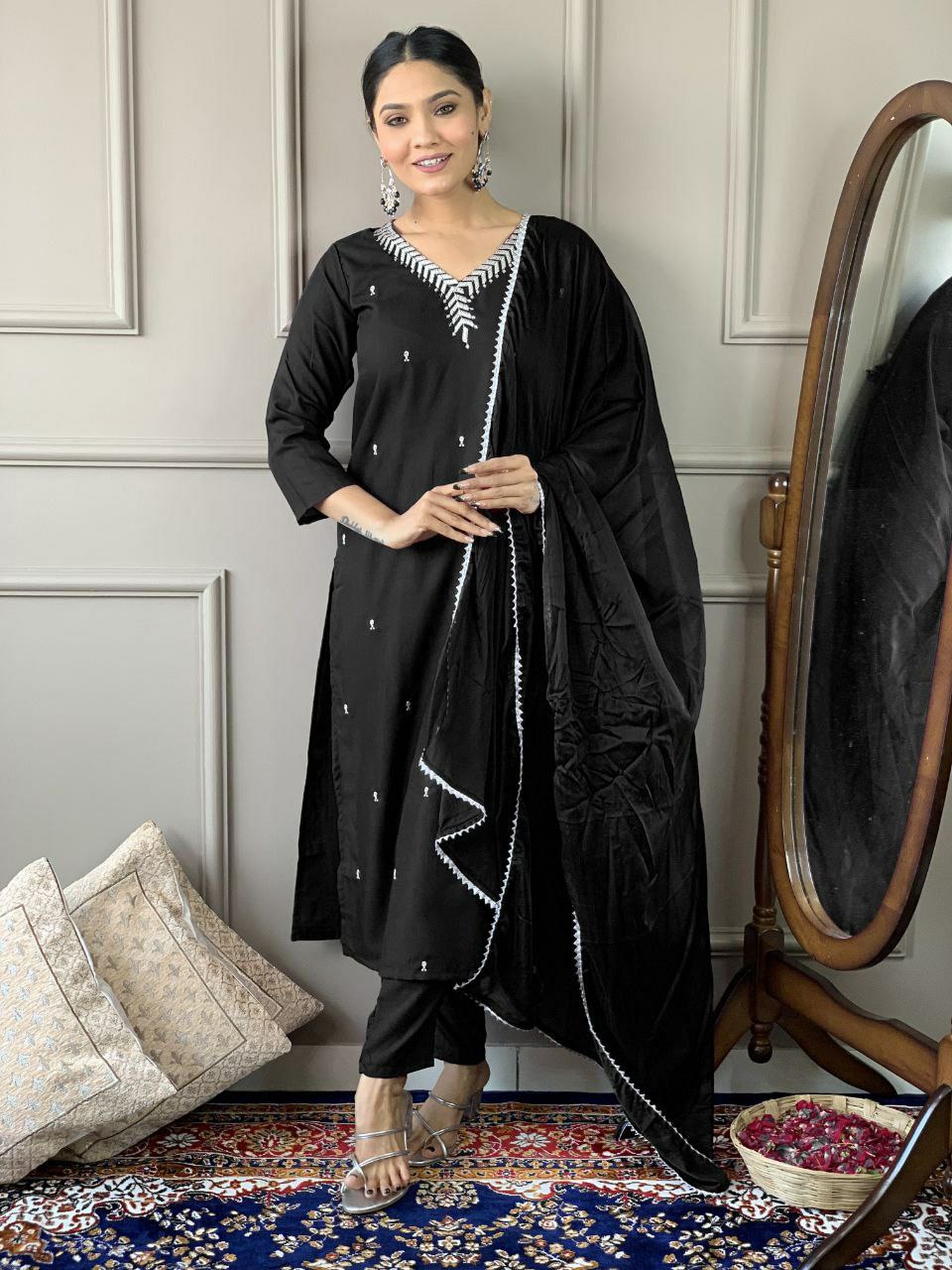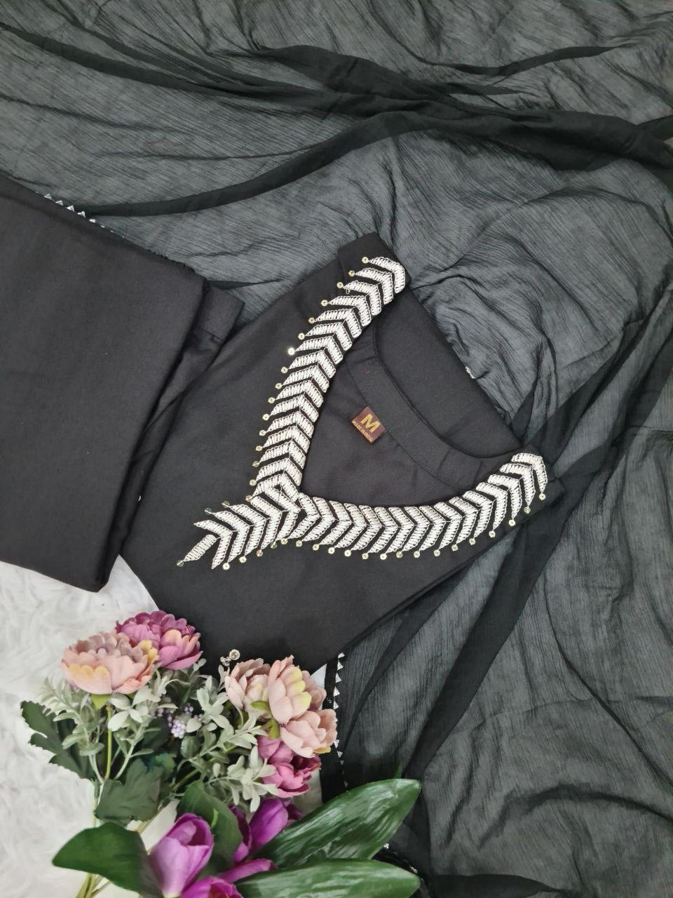 PURE REYON SLUB WITH SEQUENCE EMBROIDERY WORK KURTI SET