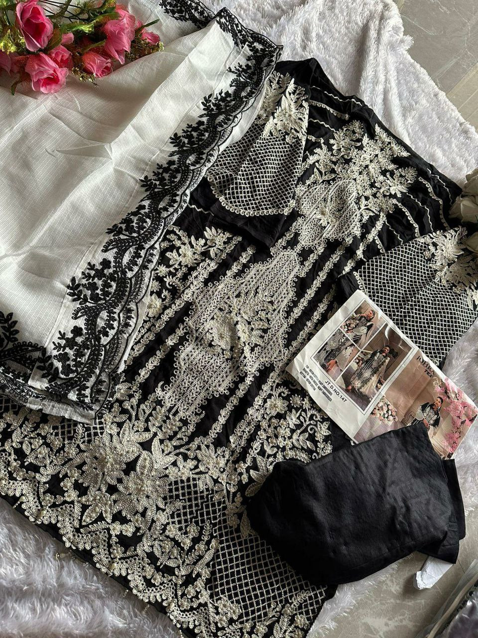 REYON COTTON HEAVY EMBROIDERED WITH (PERALS MOTI WORK)
