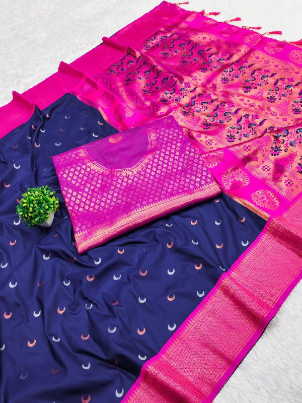 Soft Pethani silk saree with Gold & silver zari weawing moon design Saree