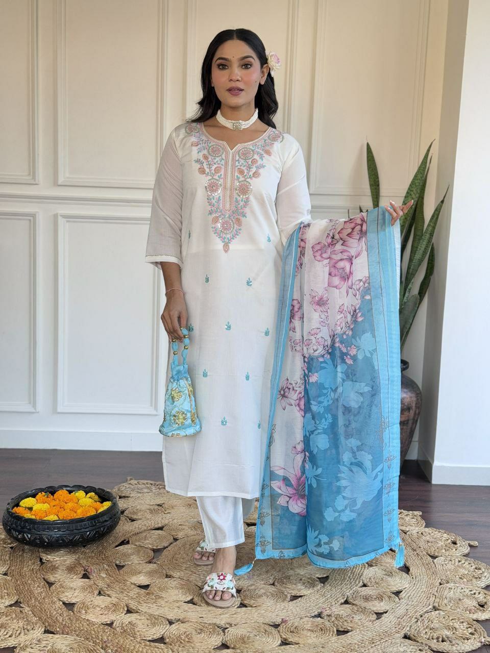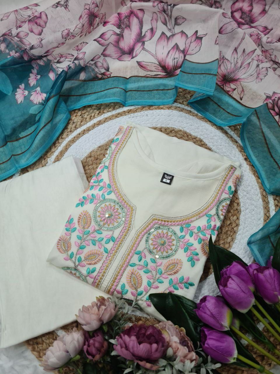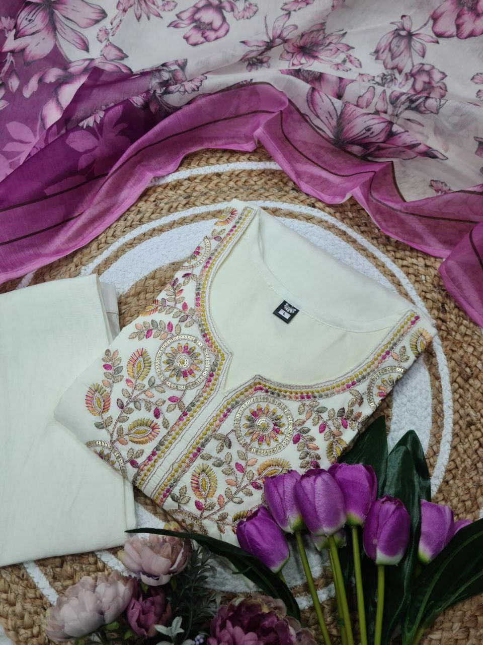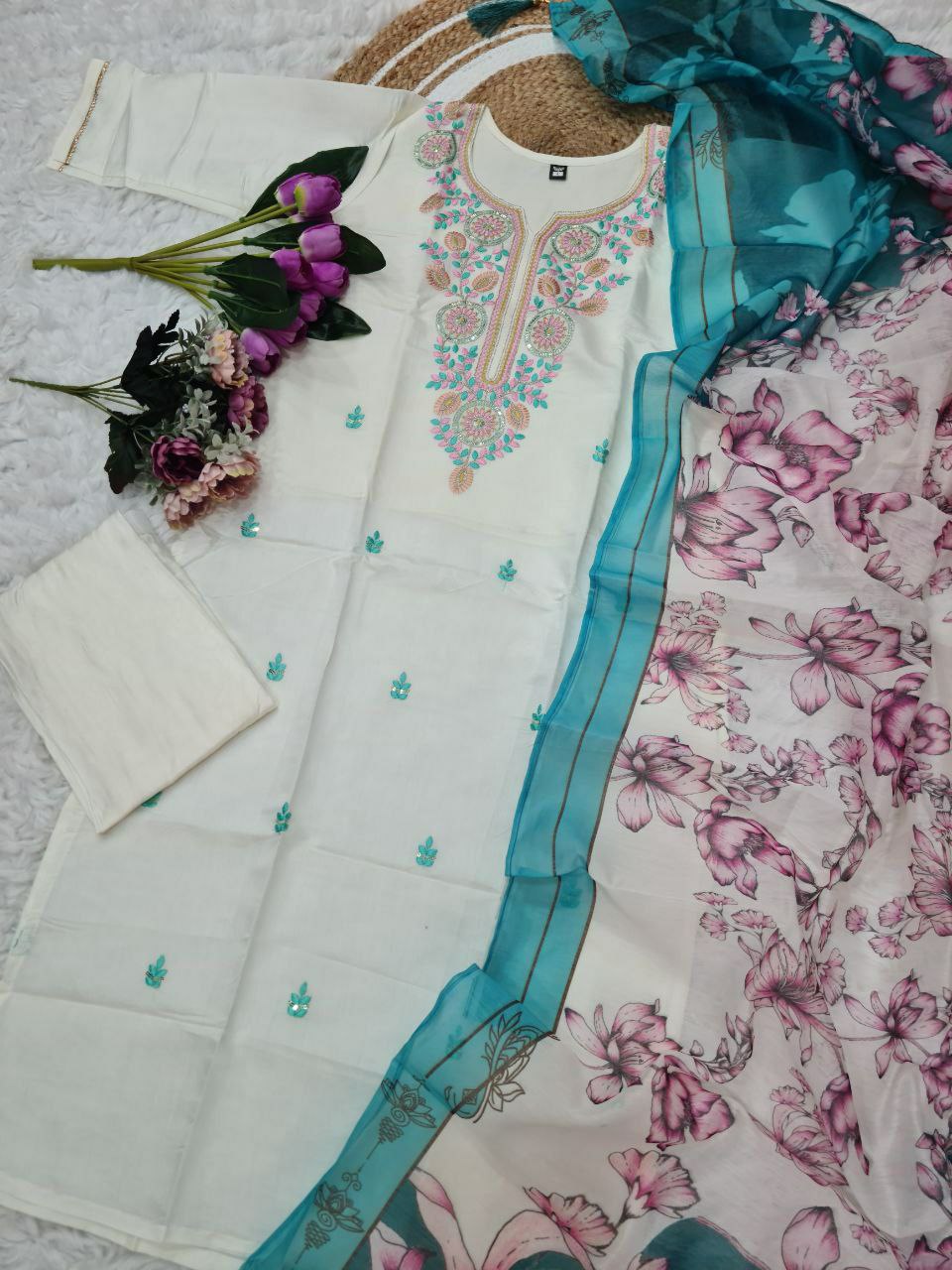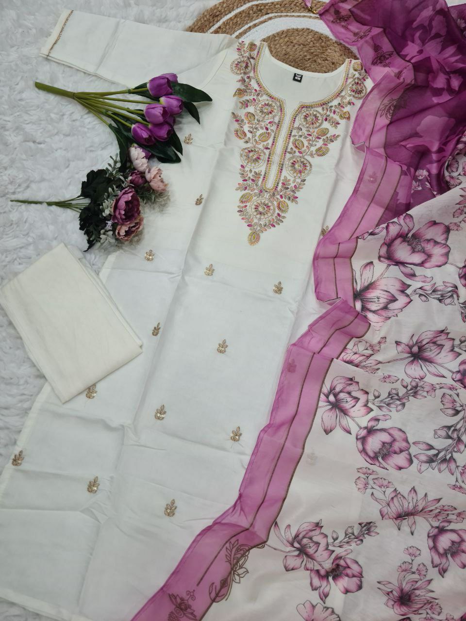 TOP FABRIC : PURE VISCOSE CHANDERI WITH SEQUENCE EMBROIDERY WORK