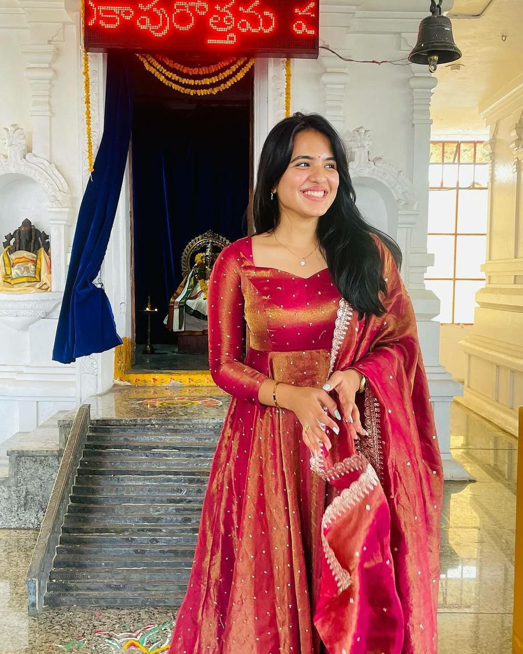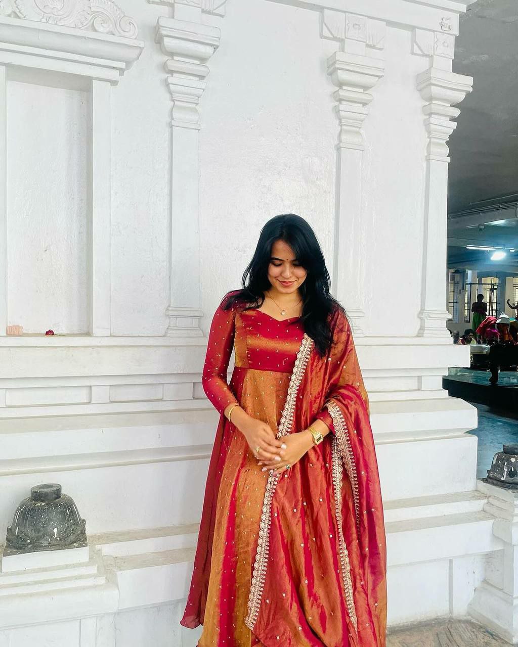 Anarkali Pure Fancy Gold Net With Embroidery 5 mm Sequence Work With Tassels With Sleeve Gown