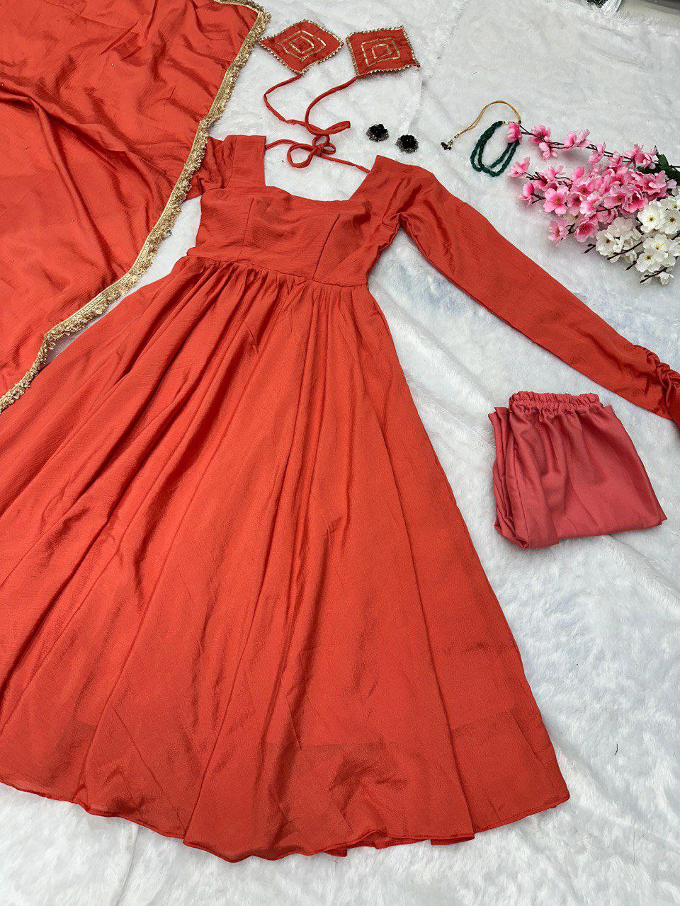 Butter cotton chinon silk anarkali For Women For Wedding And Functions