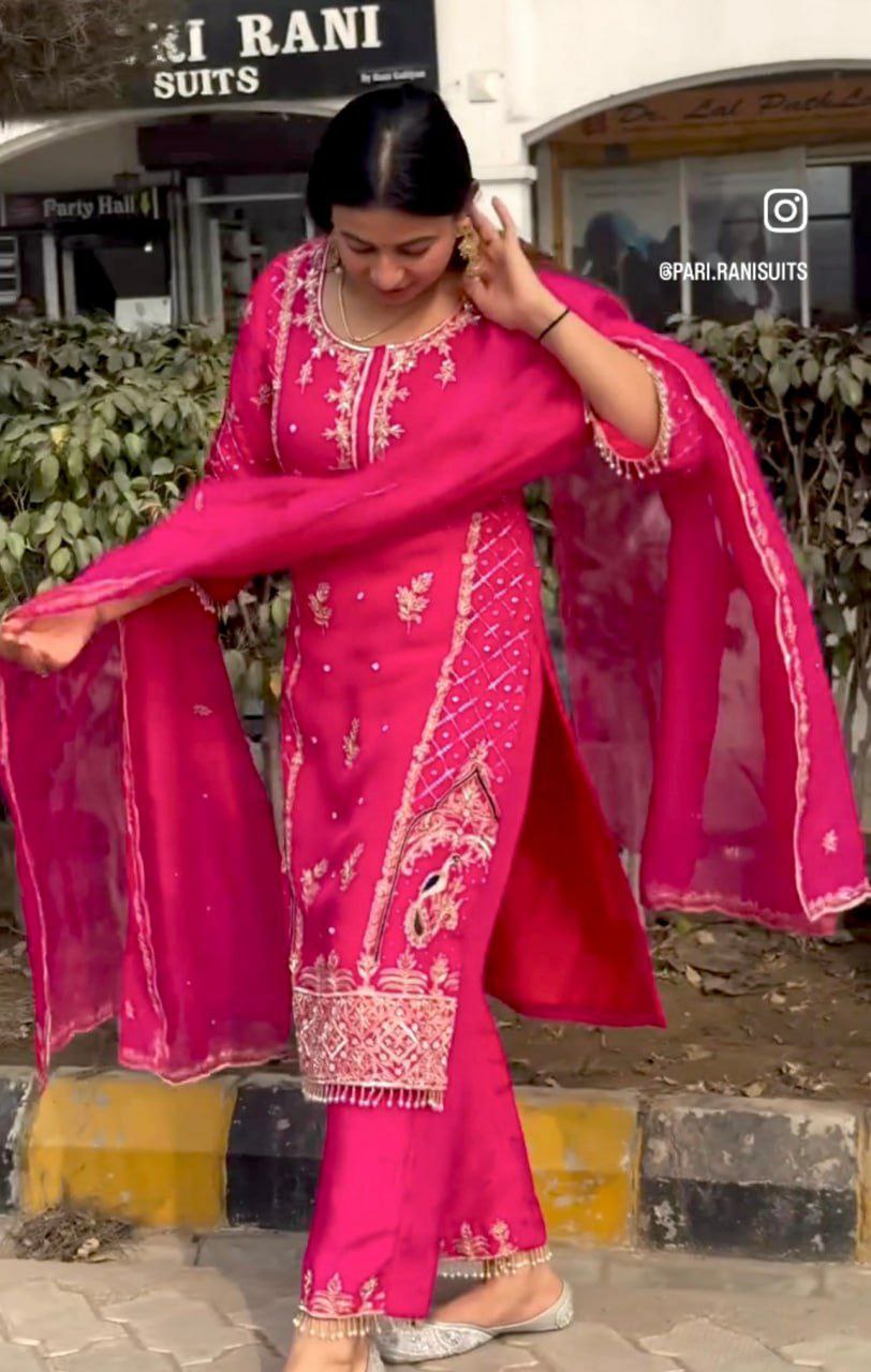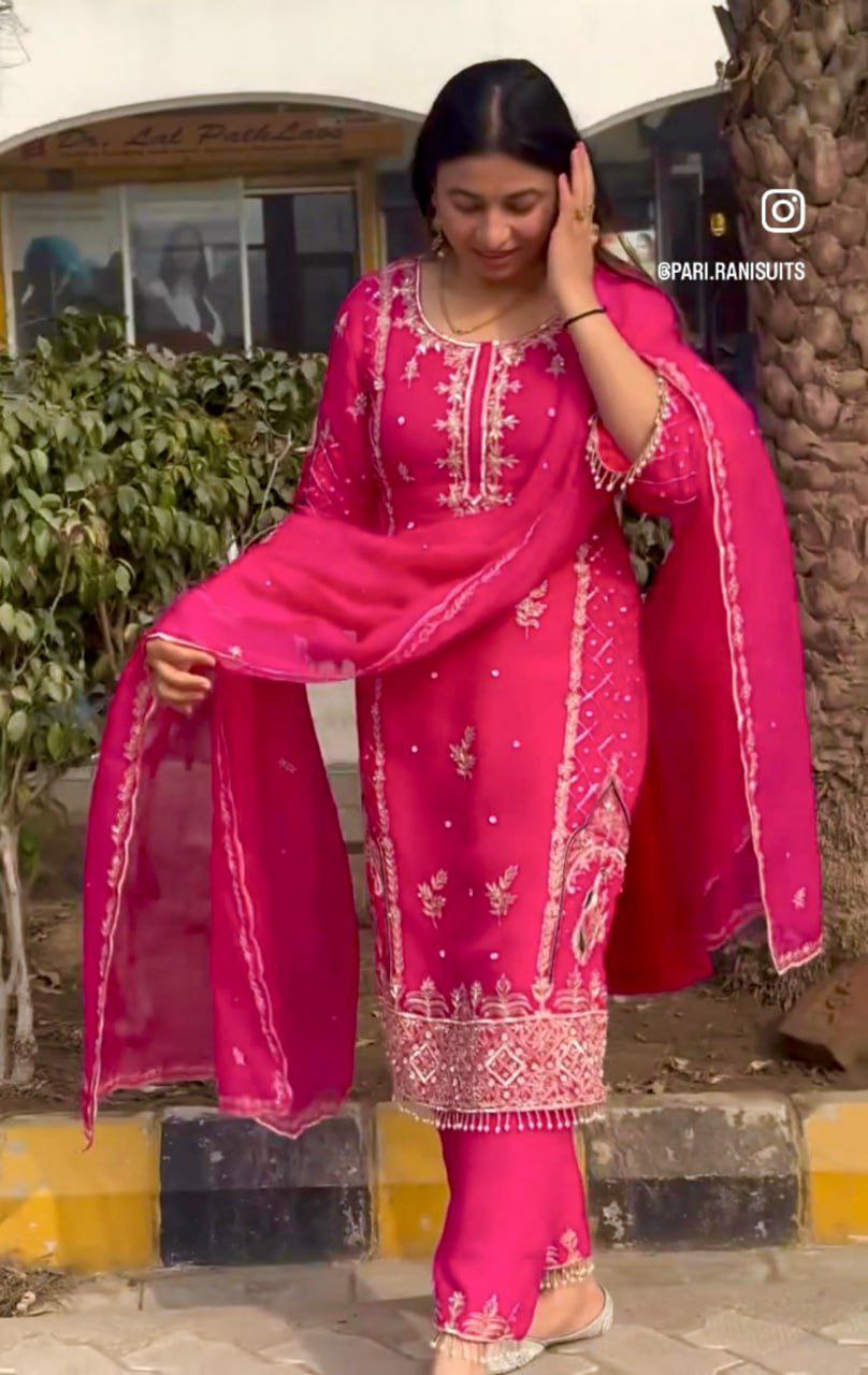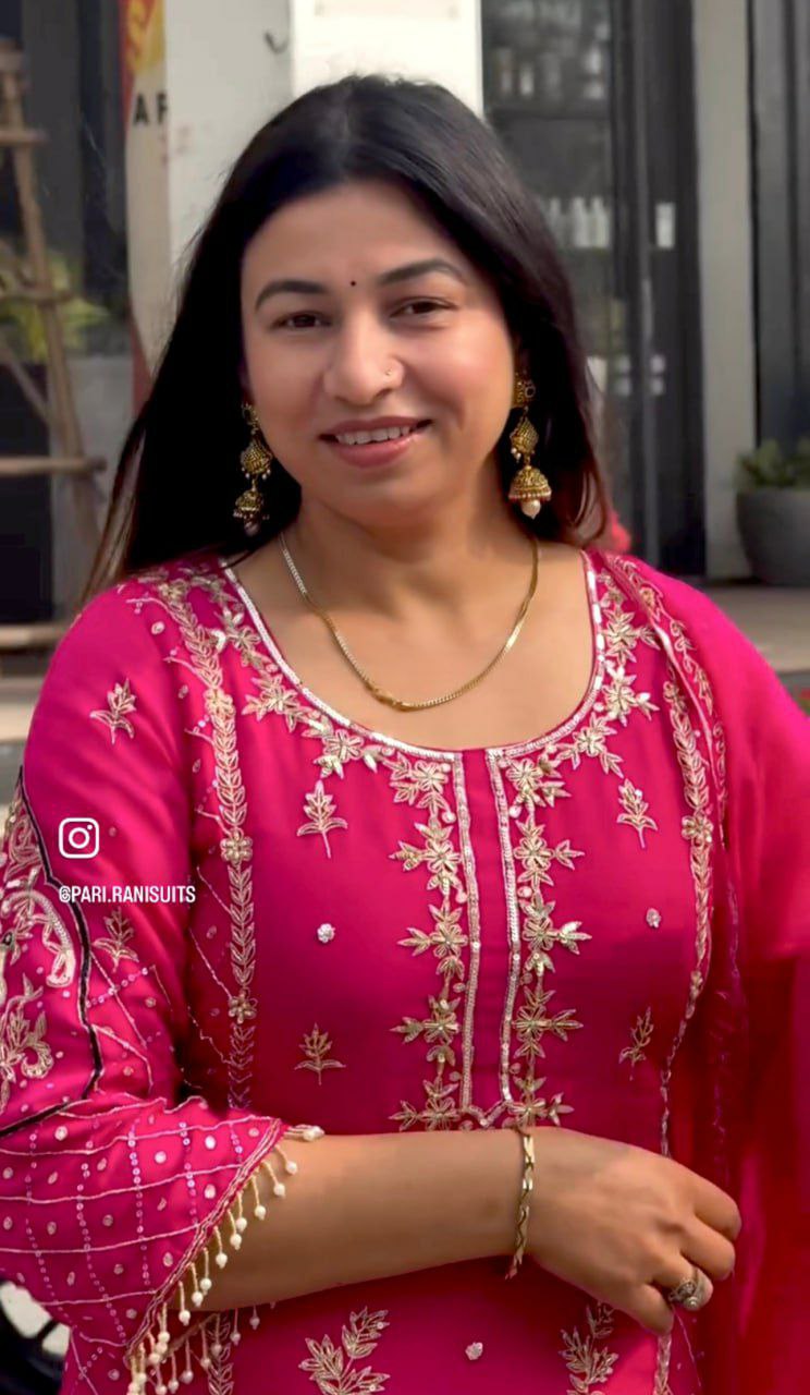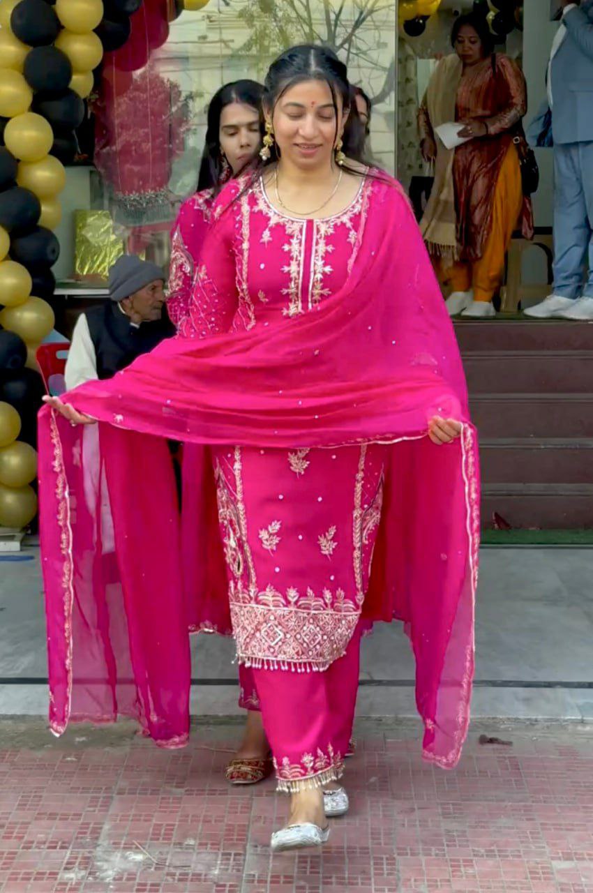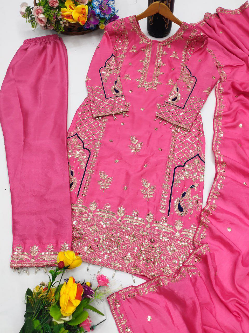 Chinon And Heavy Embroidery Sequence Work With Elastic Pent Bottom Dress