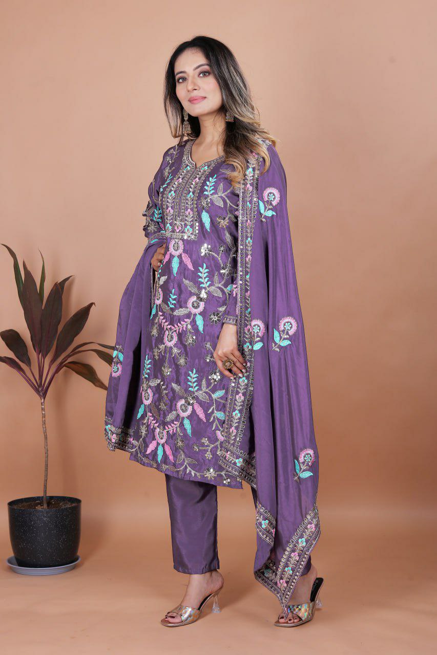 Chinon With Micro Inner & Heavy Embroidery Sequence Work With Elastic Dress