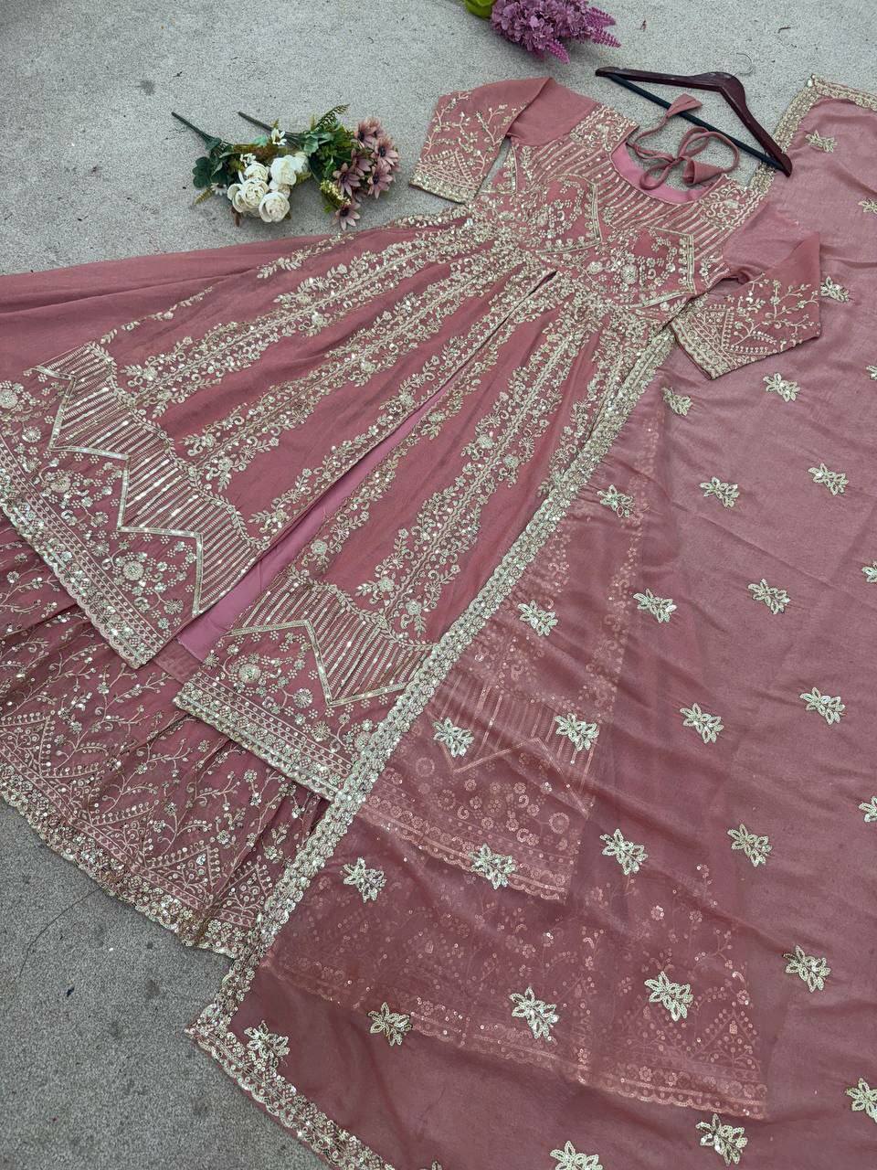 Crunchy Silk With Heavy Micro Cotton And Heavy Embroidery Sequence Work Palazzo Dress