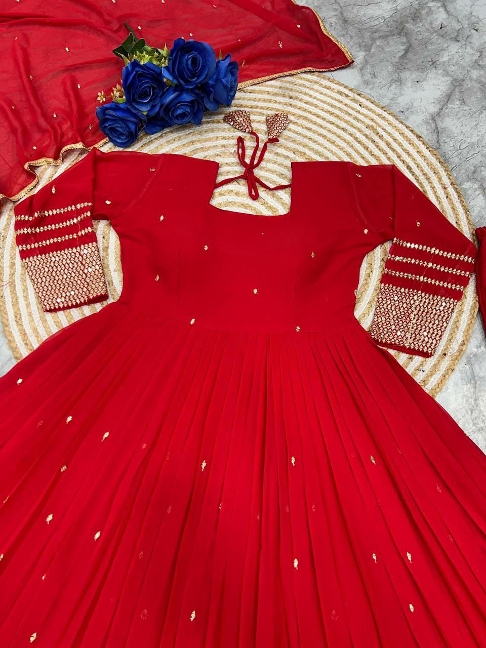 ĐĚSIGNER PARTY WEAR LOOK GOWN WITH PANT AND EMBRODARY WORK FABRICS GOWN IN PINK