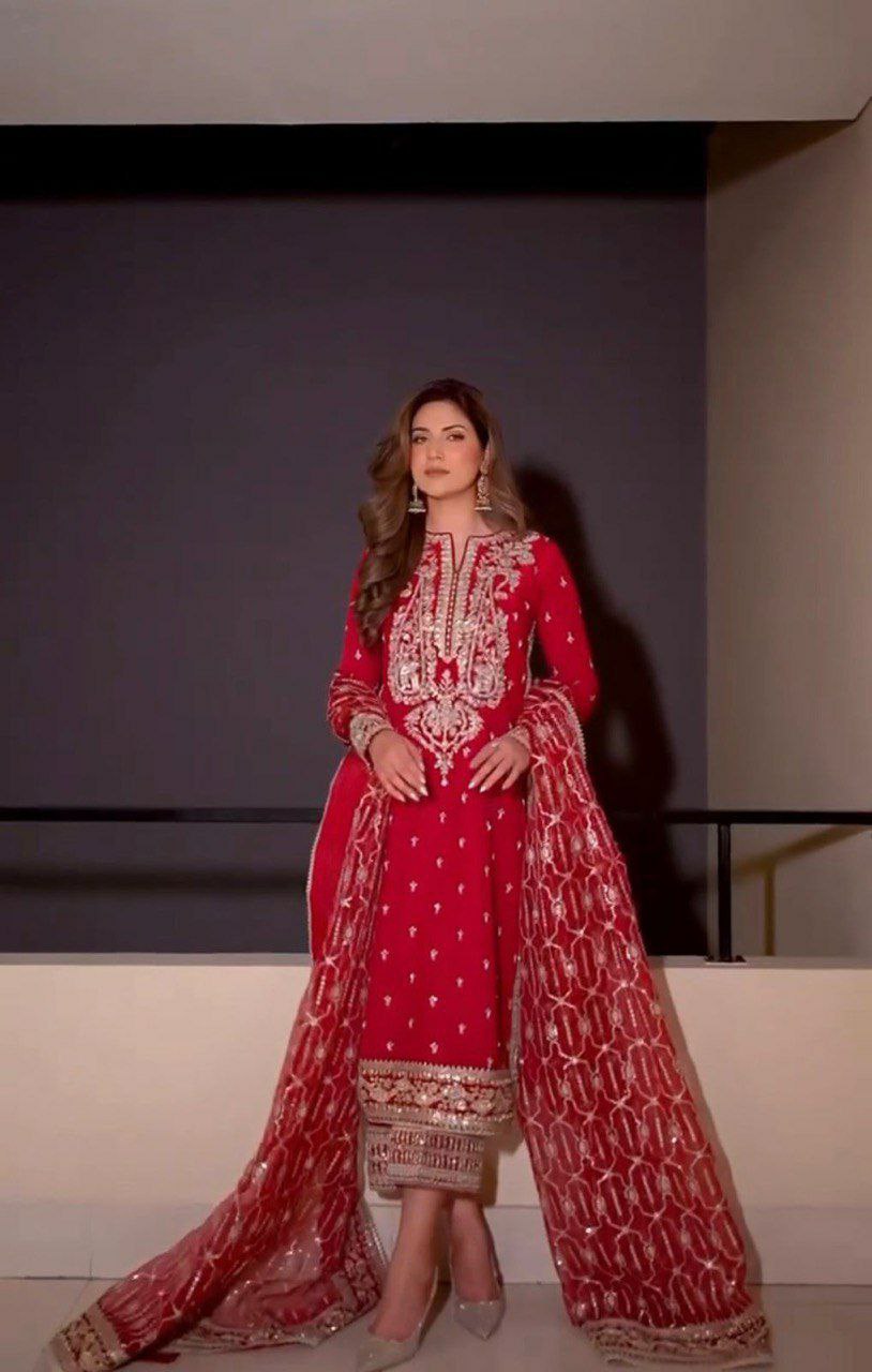 Eid Month Special Front & Back both side work Roman Silk Fabric Salwar Kameez