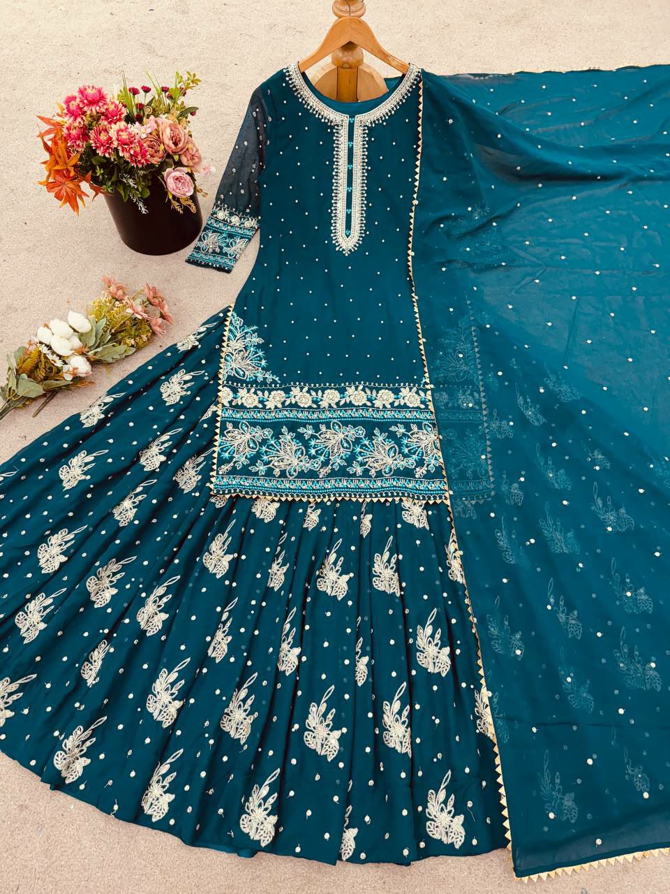 Faux Georgette With Micro Cotton And Heavy Embroidery Sequence Work With Fully Flair Top & Lehenga
