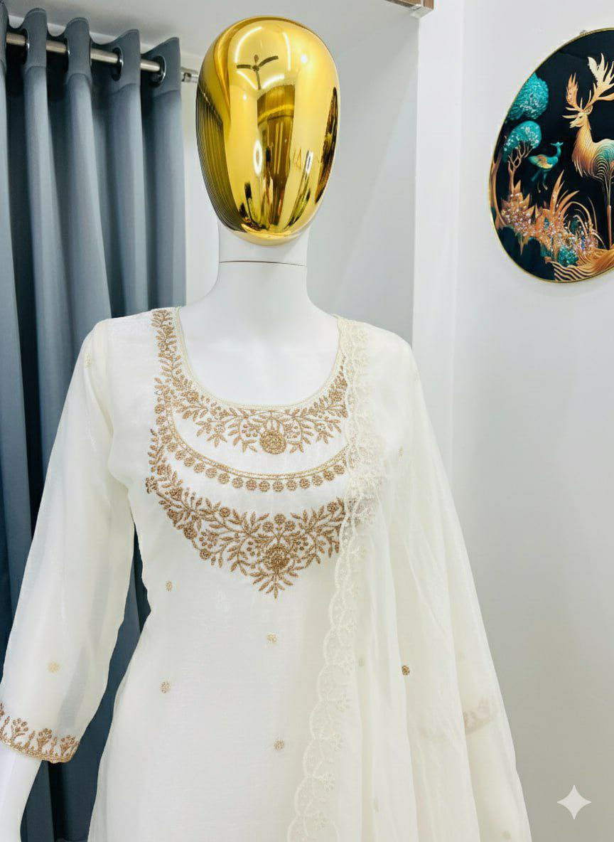 FESTIVAL SEASON LUNCH NEW DESIGNER HEAVY EMBROIDERY WORK ON FENDY FABRIC TOP SHARARA AND DUPATTA SET