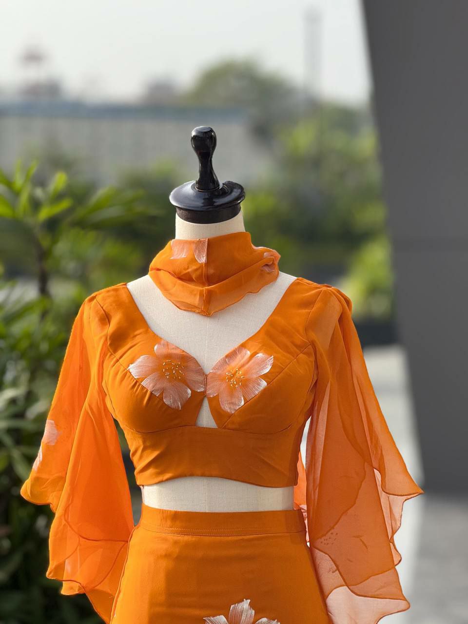 Georgette With Hand Paint Work & Fish Cut Lehenga With Adjustable Waist Elastic And Dori Lehenga Choli