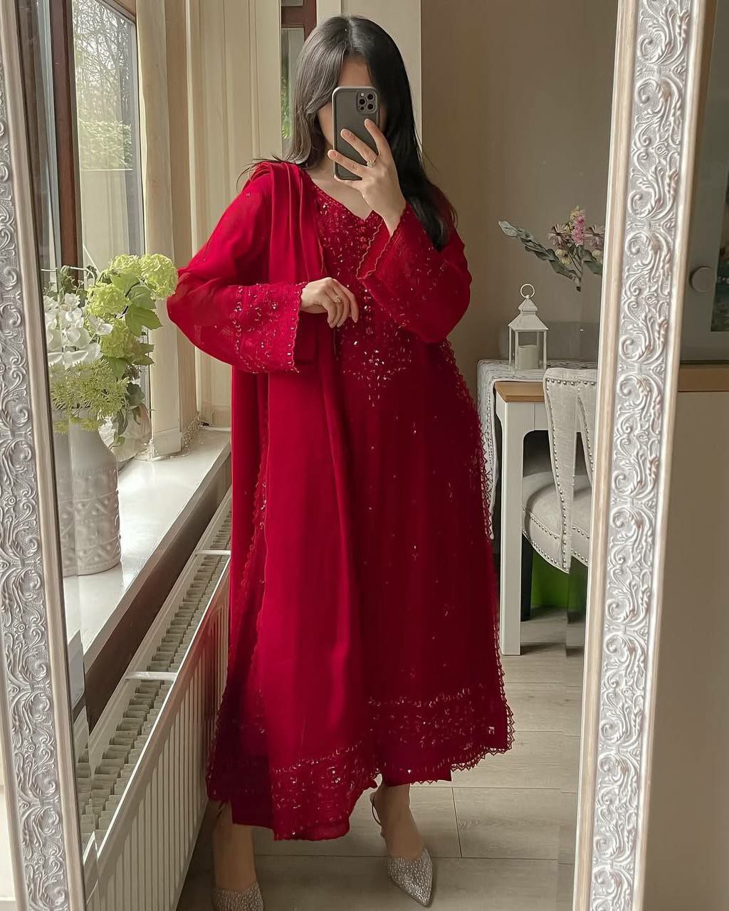 GEORGETTE WITH MICRO INNER AND SEQUENCE EMBROIDERY WORK DRESS
