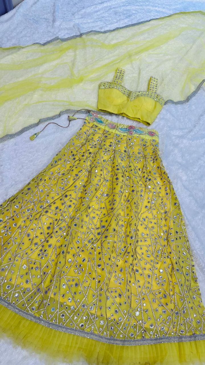 Georgette With Zari & Foil Paper Work + Net Ruffle Border With Sequins Work Lehenga Choli
