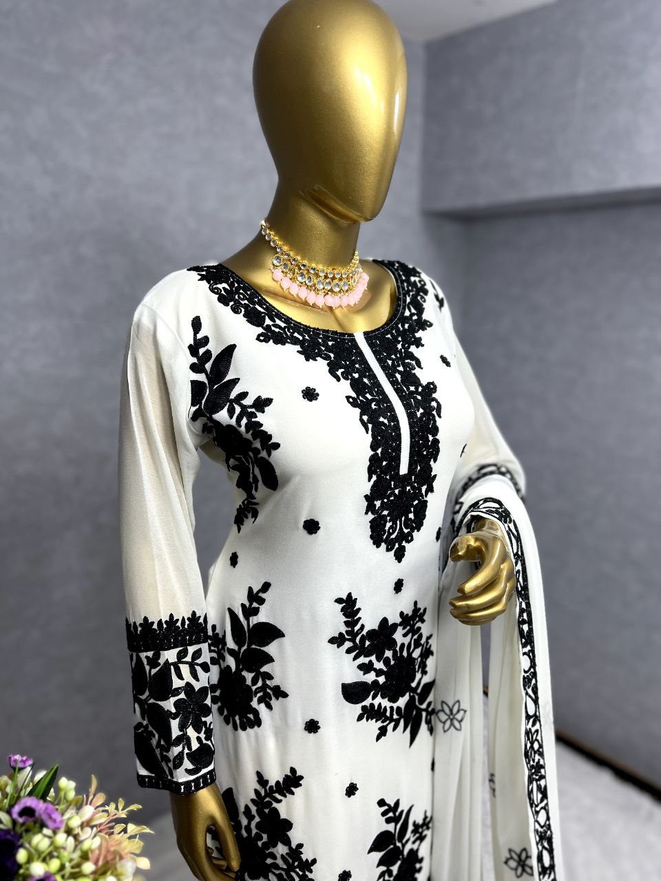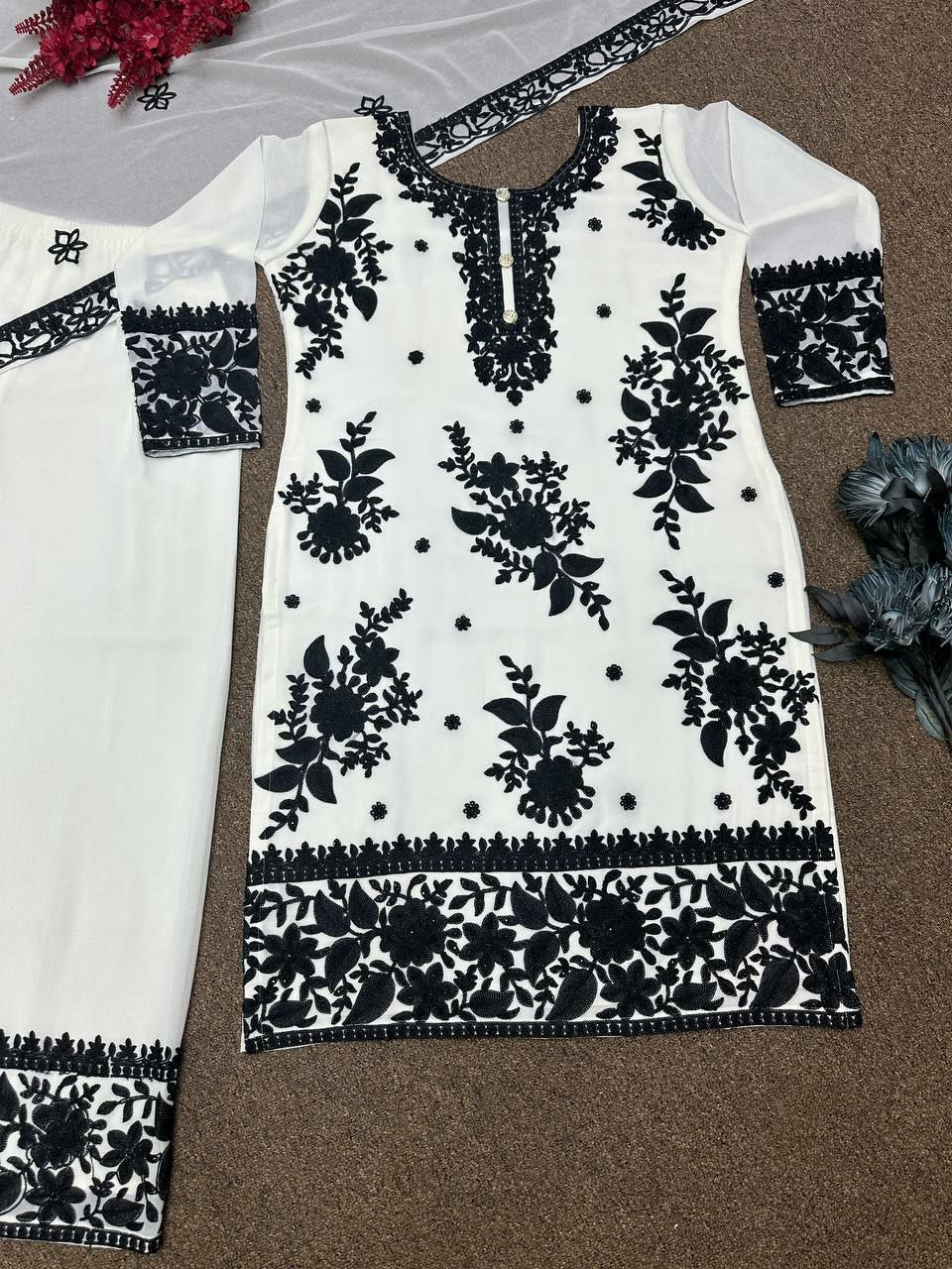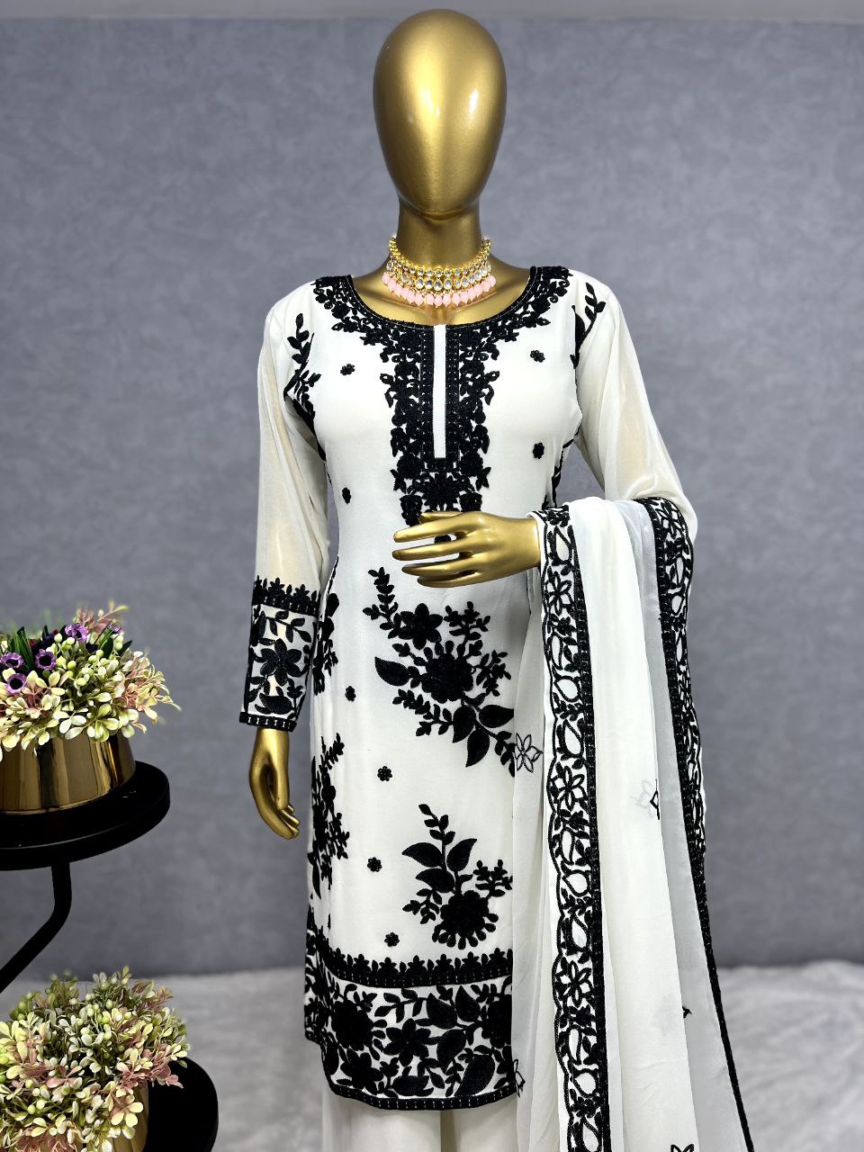 Heavy Faux Georgette Kurti And Plazzo With Dupatta For Women