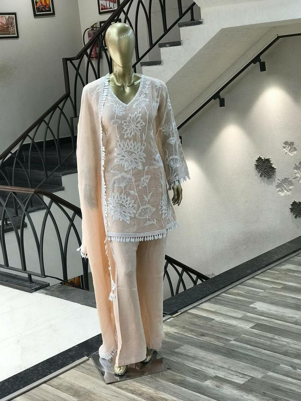 Heavy Faux Georgette With Elastic And Fancy Gpo Lace Border Dupatta Type Palazzo Dress