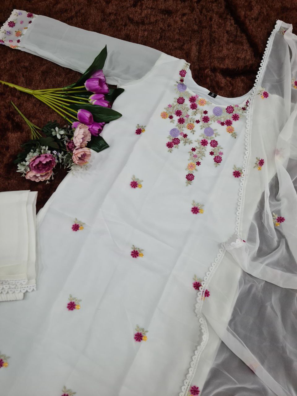 HEAVY GEORGETTE WITH EMBROIDERY WORK KURTIS