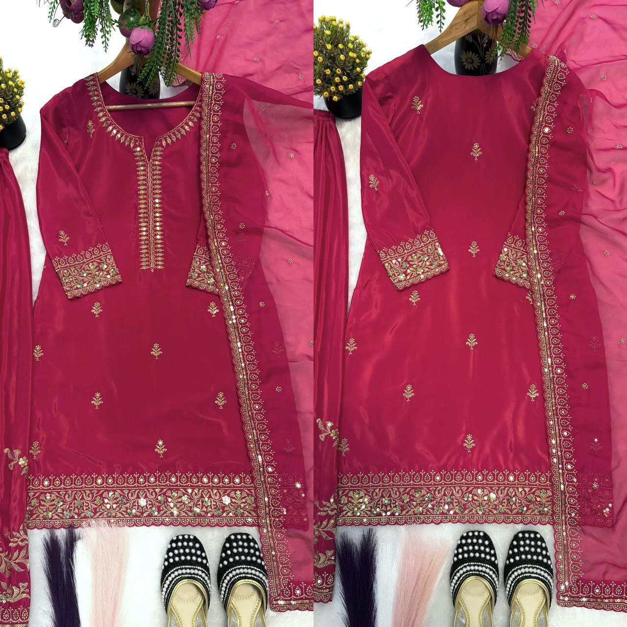 Heavy Natural Crep Silk Heavy Embroidery Sequence Work With thread work.