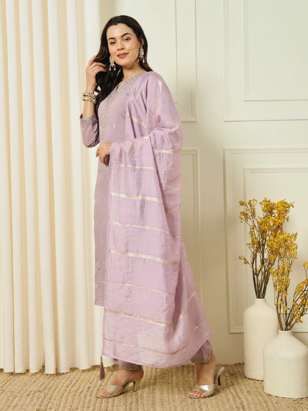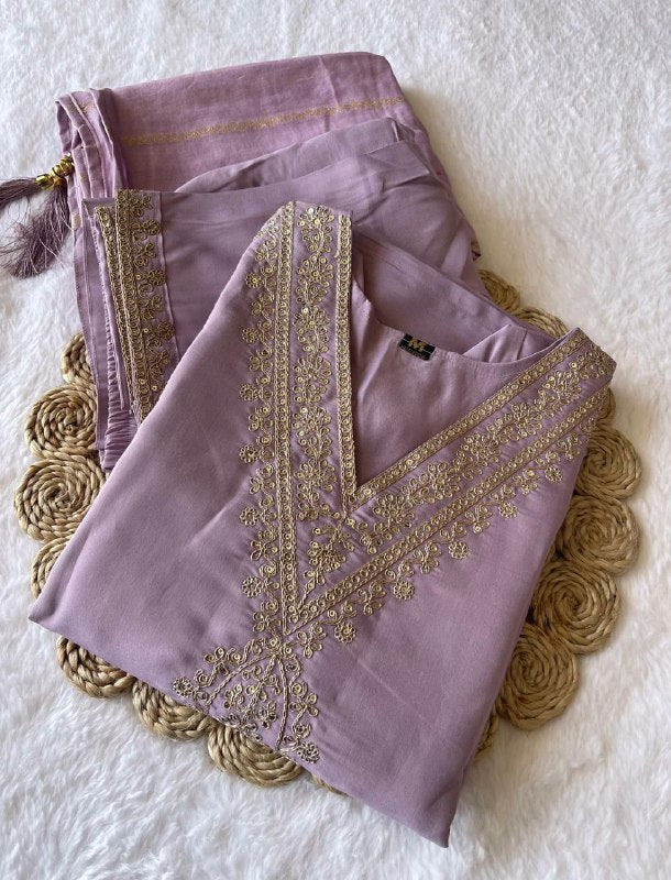 LAVENDER DESIGNER ROMAN SILK KURTI