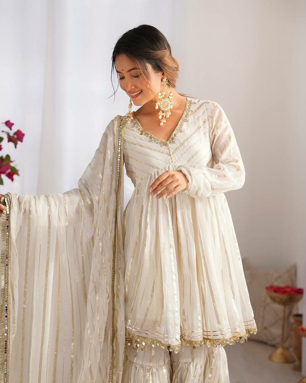 Mal Chanderi With Real Mirror & Handwork With Full Flair Sharara Palazzo Dress