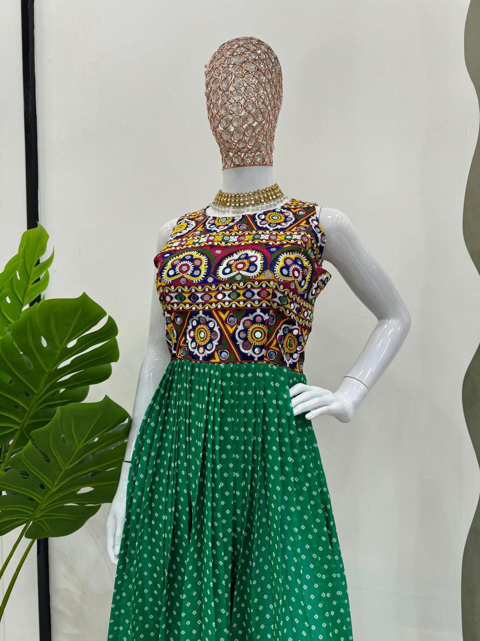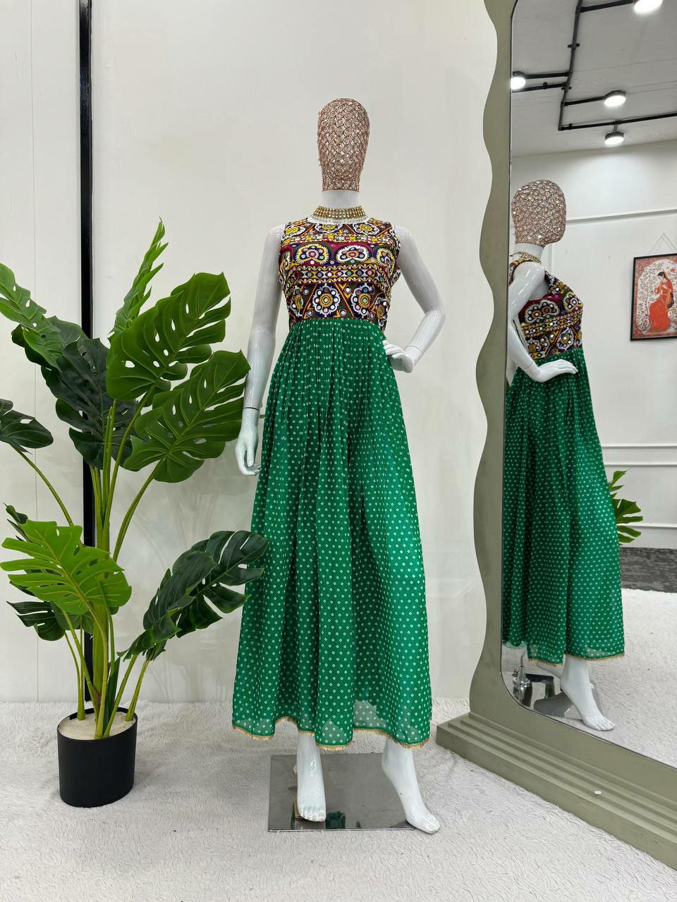 Fabric : Foux gorgette INNER   : Micro Work  : Chinestich work with real mirror work with Digital print Stich  : M(38), L(40), XL(42) with 44(XXL) margin Front and back both side work