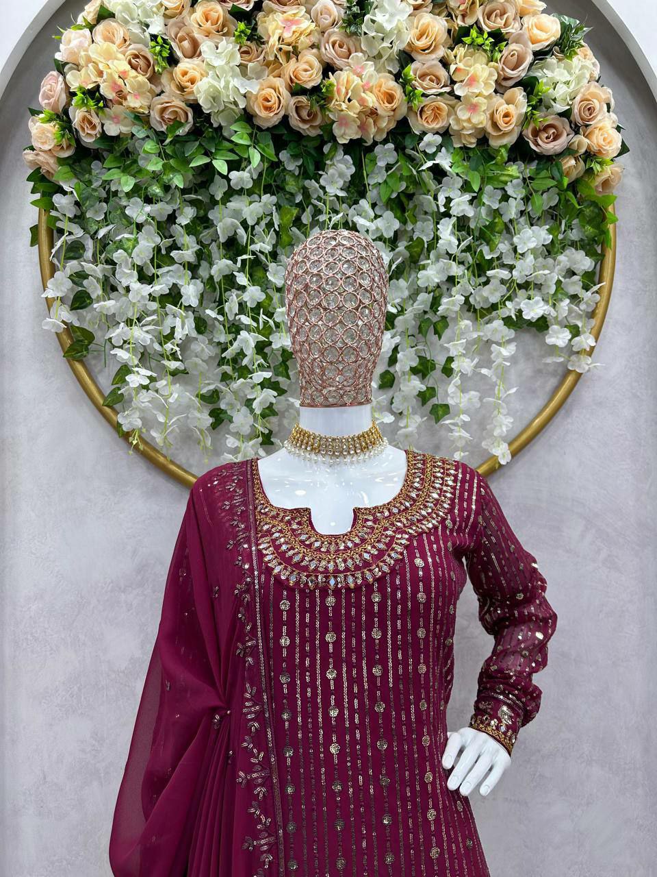 New Maroon Faux Georgette With Real Mirror Kurti Set For Women