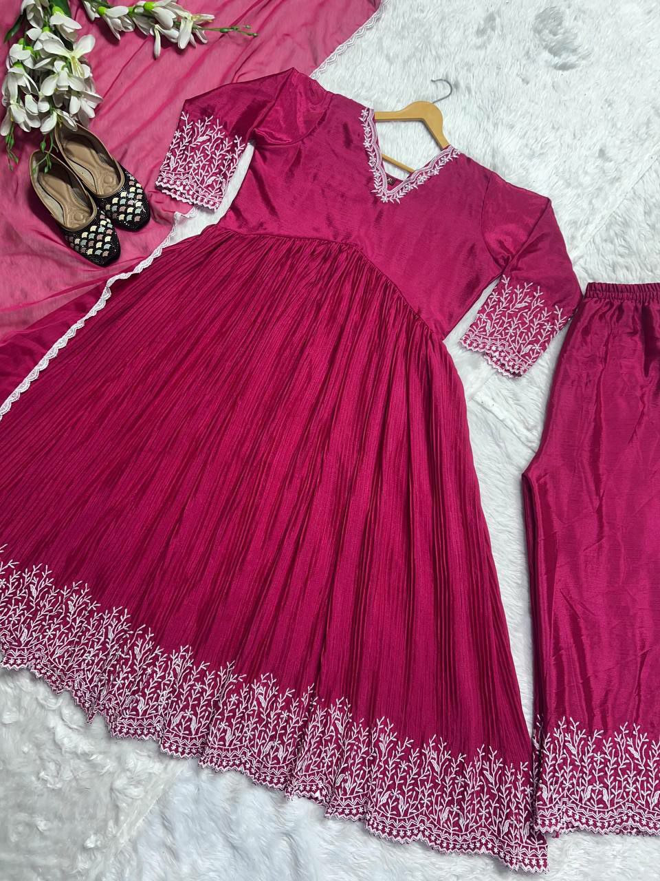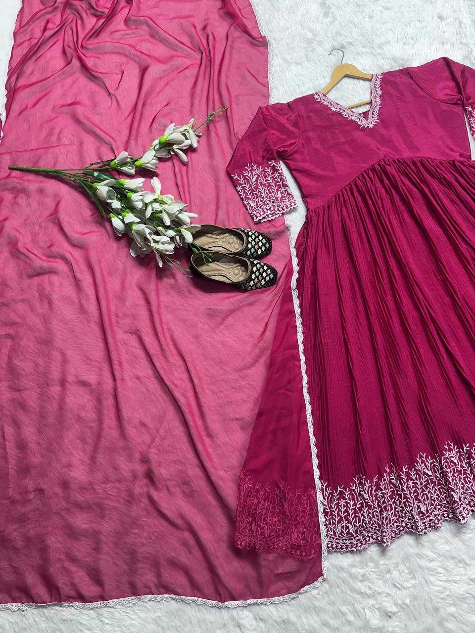 Pure Chinon Silk & Crush With Embroidery Work With Fancy Full Sleeves Gown