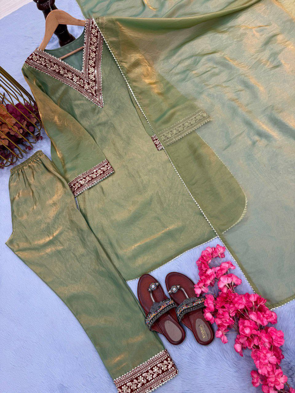 Bottom Fabric : Pure Gold Fendi Silk With Embroidery 5 mm Sequence & Coding Dori Work With Elastic