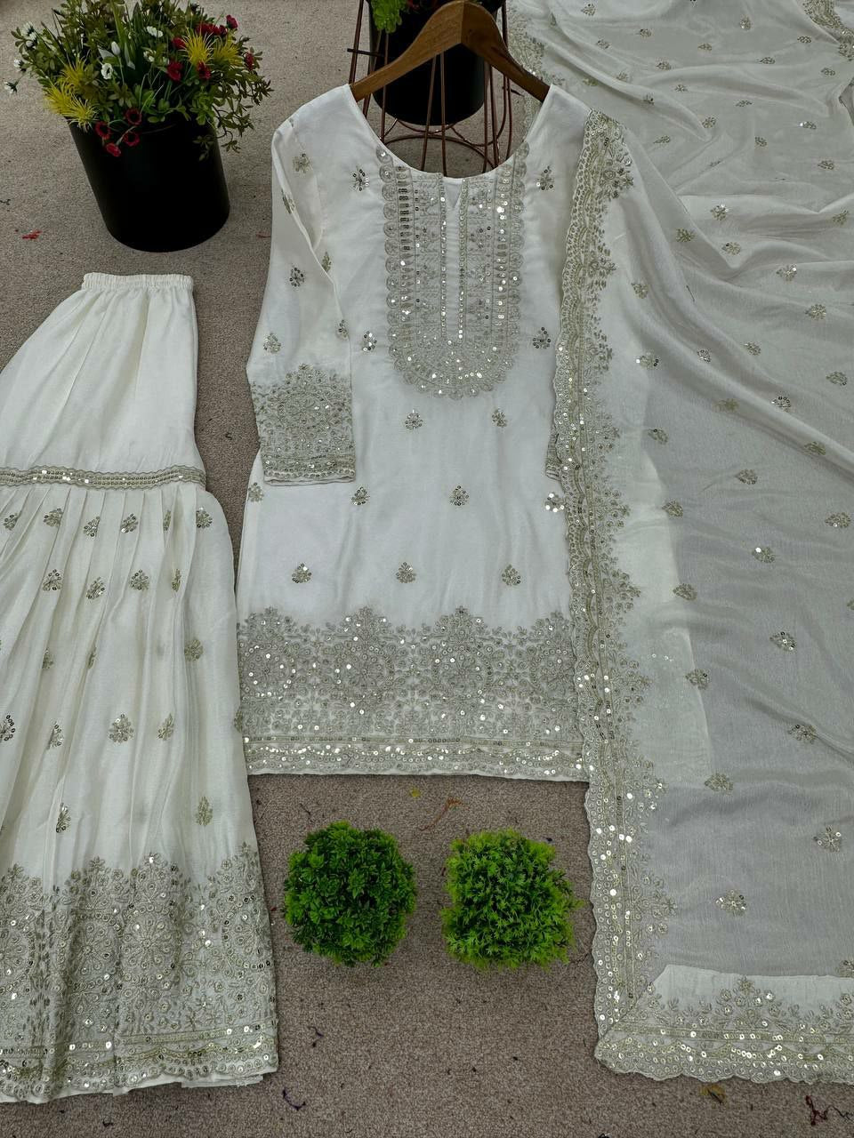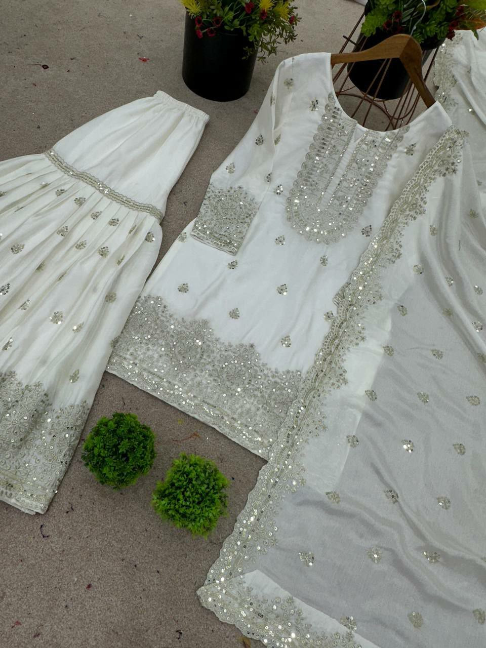 Pure Heavy Chinnon Silk Kurti With Heavy Sharara Plazo Fully Stitched Ready To Wear