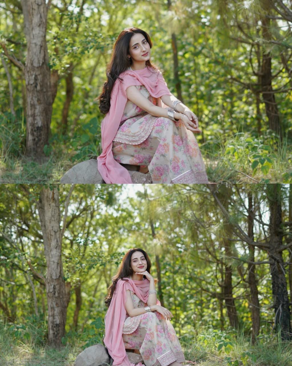 Pure Sifon Georgette With Digital Print And Embroidery Sequence Work With Four Side Less Border With Elastic Farshi Palazzo Dress