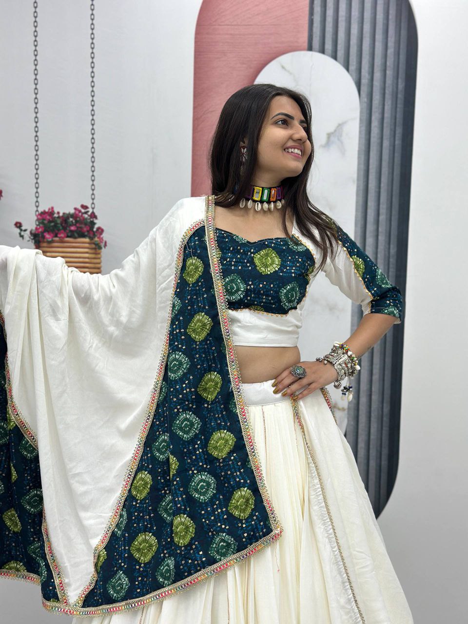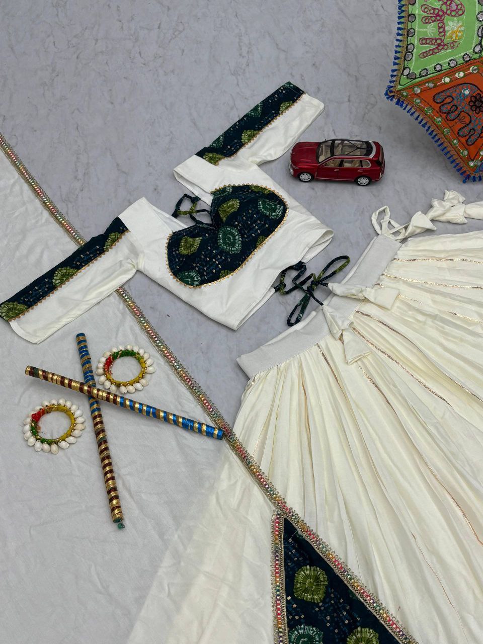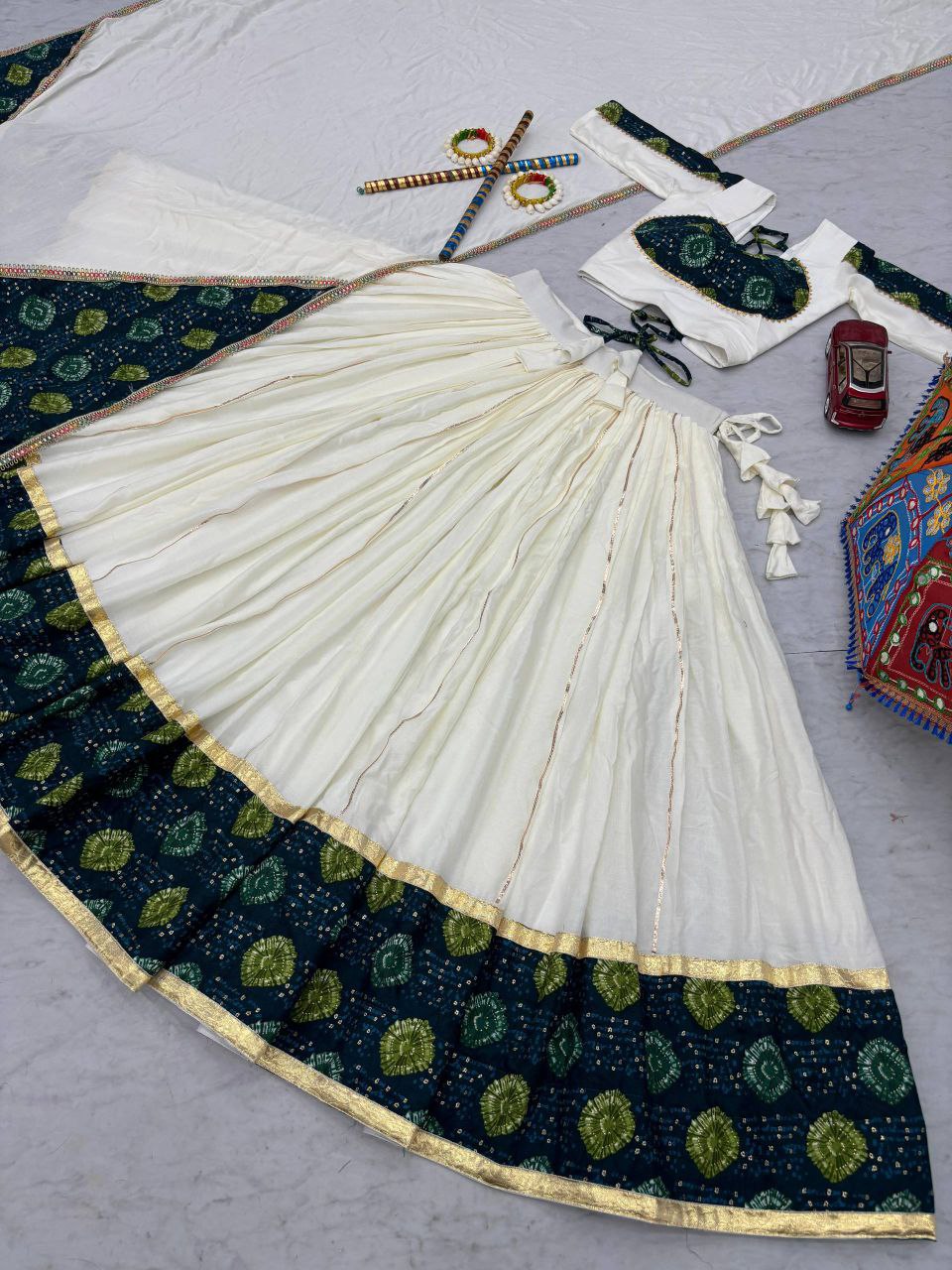 Riyon Cotton With Ajarakh Print And Ribbon Lace Work Canvas Patta Lehenga Choli