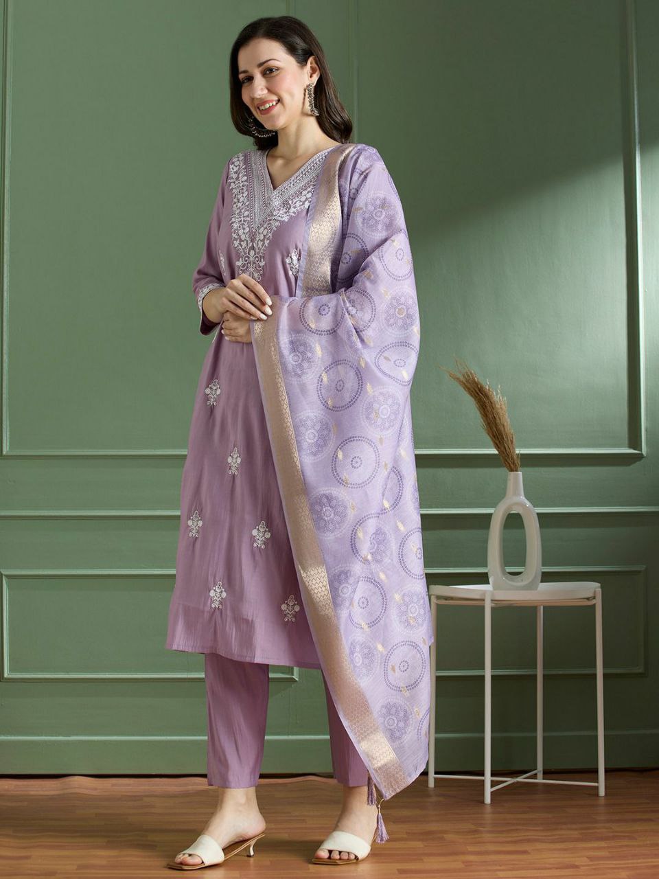 Roman Silk with Beautiful Embroidery With cotton tread Work