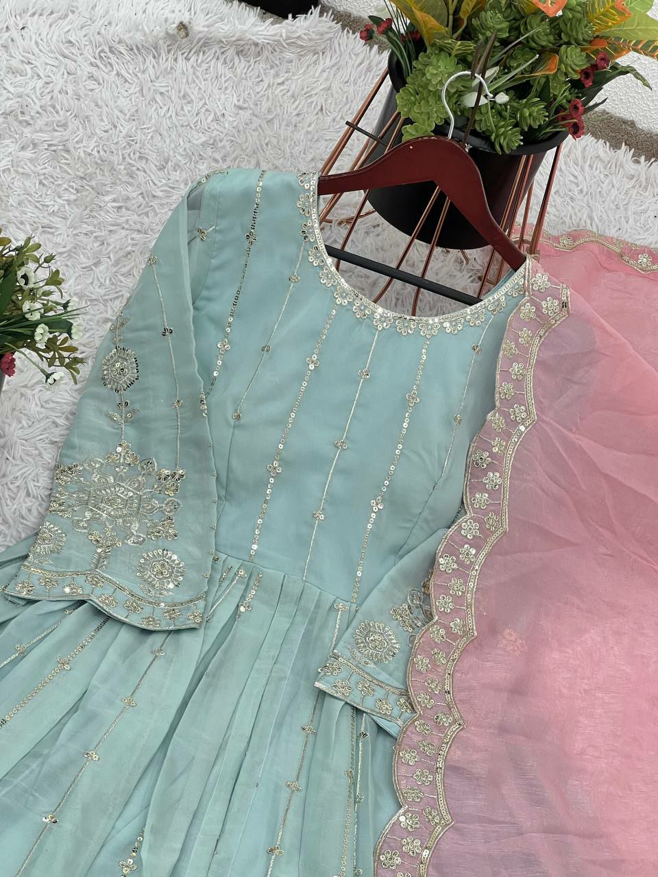 Star Georgette With Heavy Micro Cotton And Heavy Embroidery Sequence Work Top & Lehenga