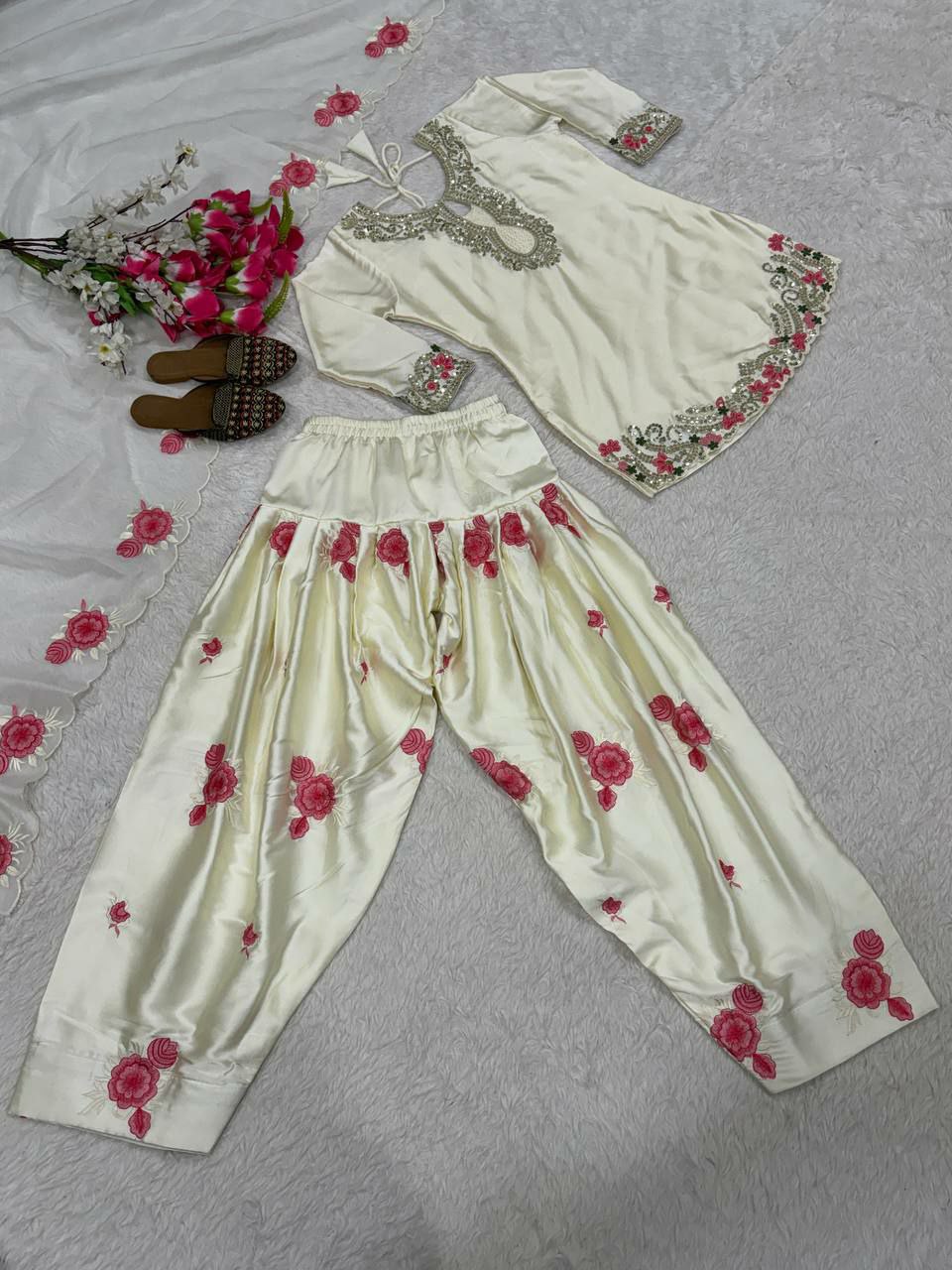 Top Fabric heavy Japan Satin Material with Embroidery sequence work (Fully Sleeve)