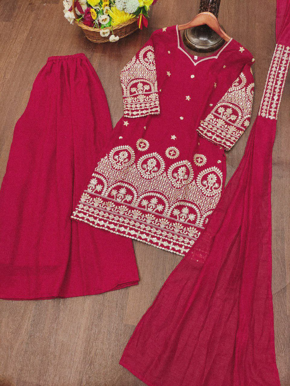 Vichitra Silk With Micro Inner And Coding Sequence Embroidery Work With Elastic Sharara Dress