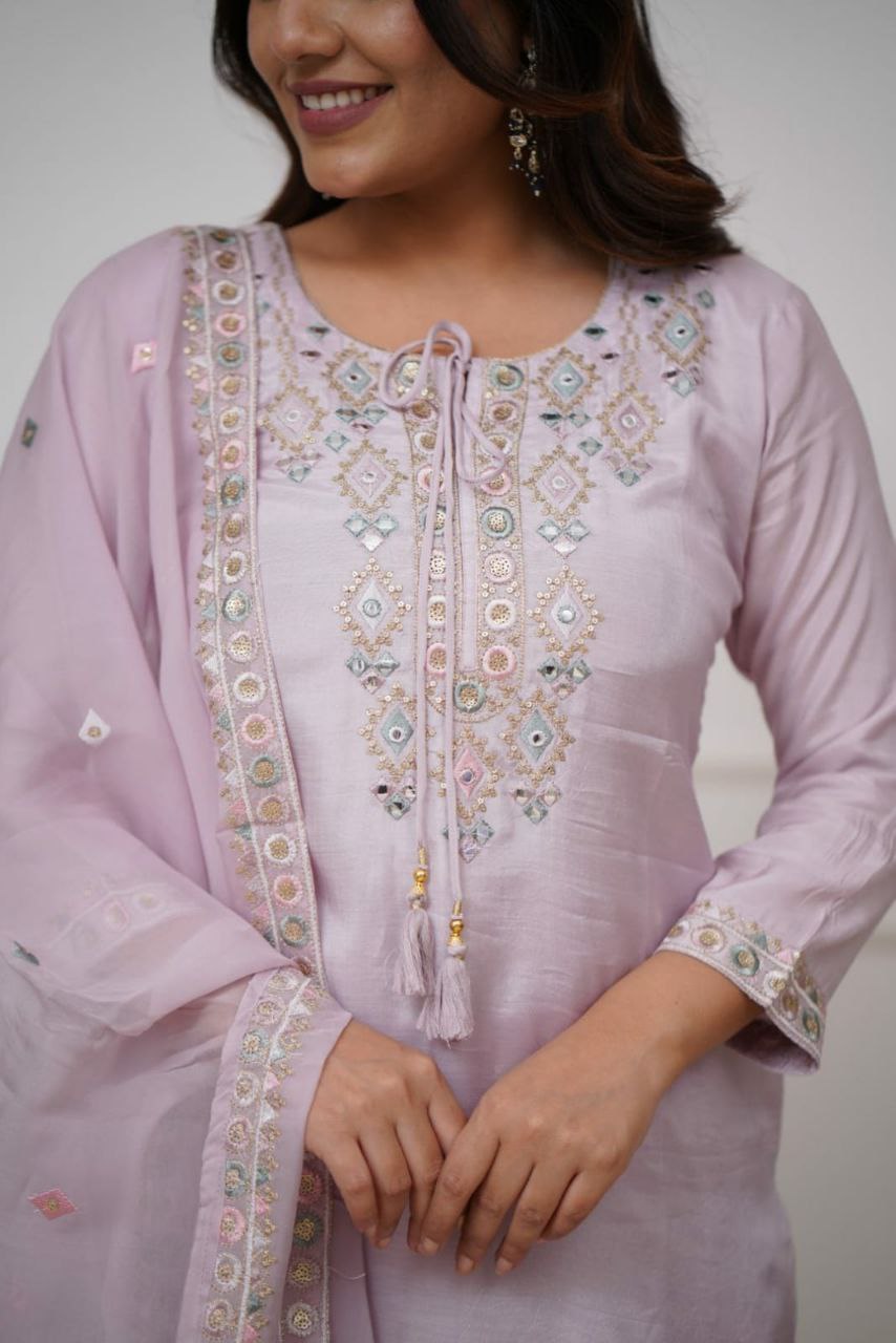 VISCOSE CHANDERI WITH SEQUENCE EMBROIDERY WORK KURTIS